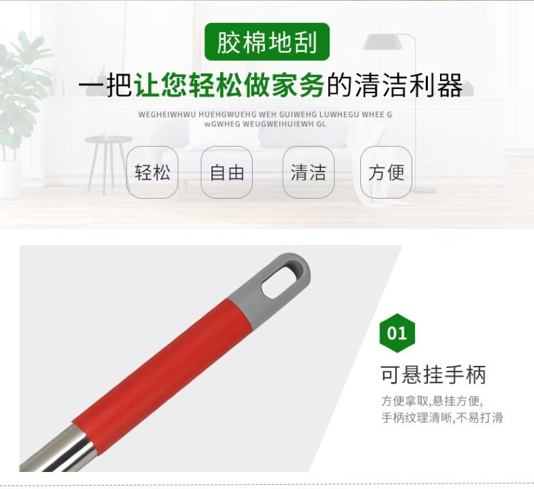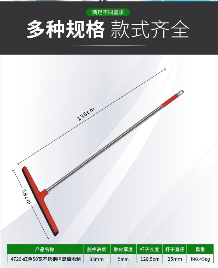 驰色 8853-红色70宽不锈钢柄黑棉地刮 CS-CT 180 1把 红色(单位:把)