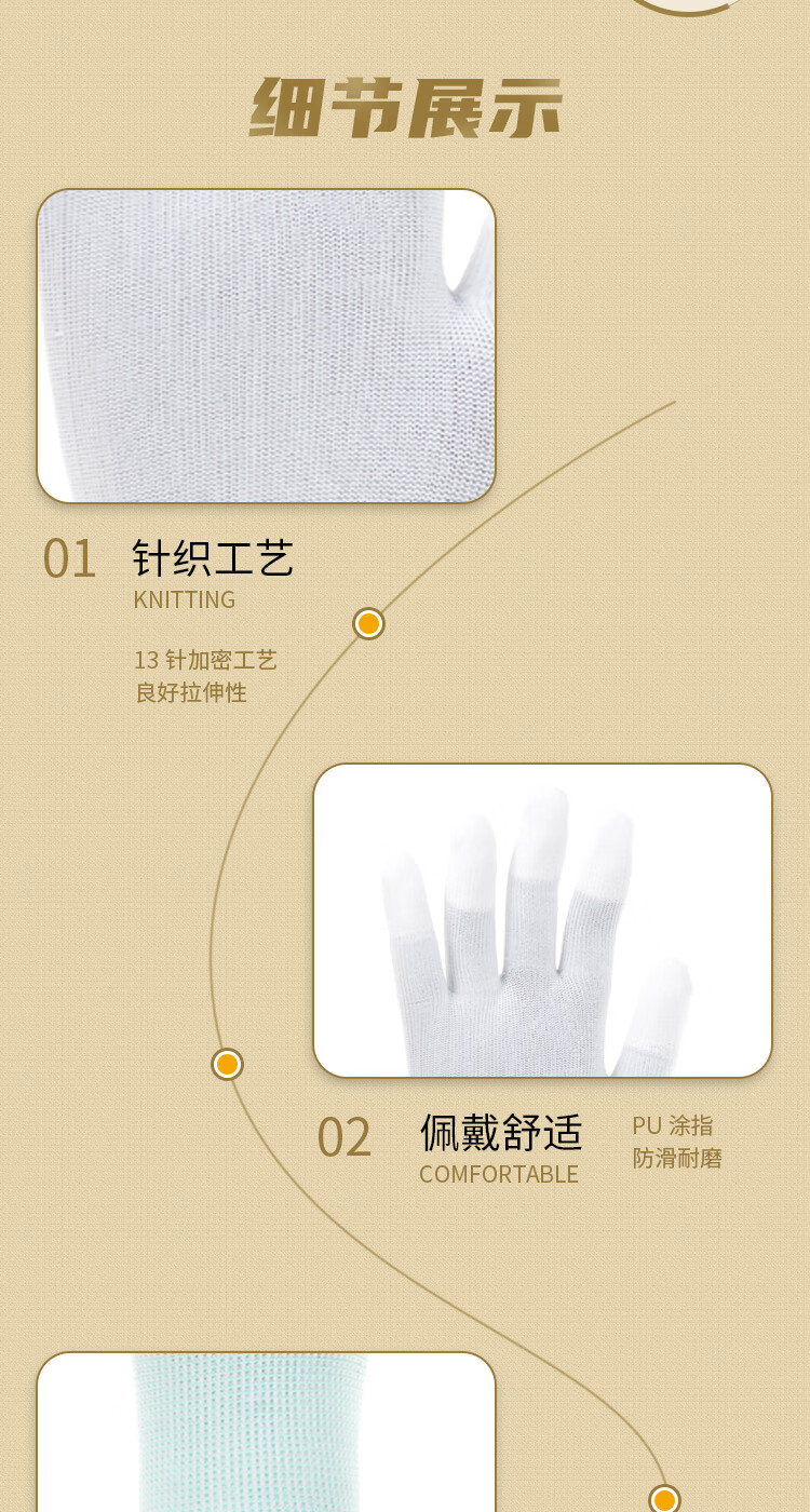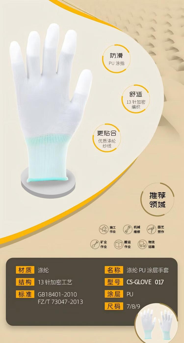 驰色 13针白涤纶白PU涂指手套 CS-GLOVE 017 12双/打 白色(单位:打)