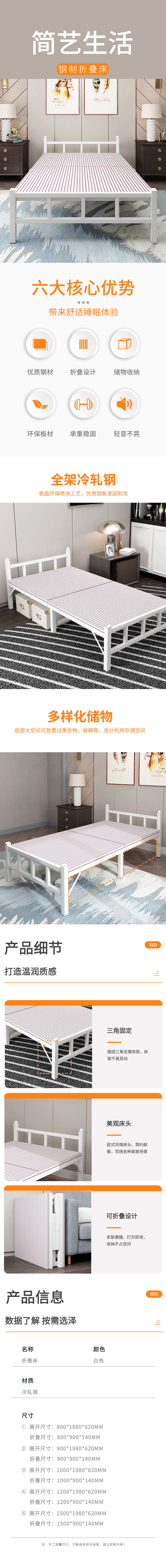 悦山 铁架床单人免安装折叠午睡床 YHc8-9 1500*1980*620mm 白色(单位:张)