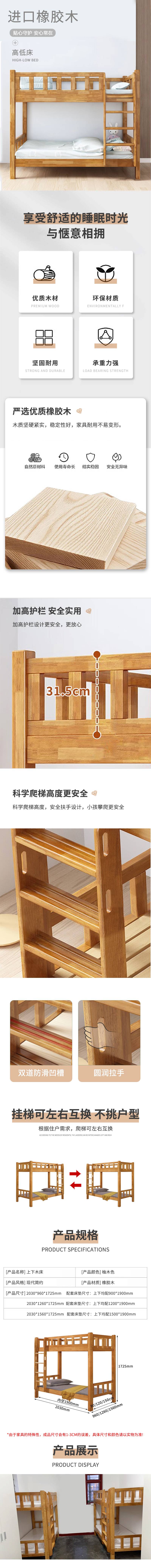 悦山 上下木床宿舍床(不落地梯) YHb1 2030*960*1725mm 柚木色(单位:张)