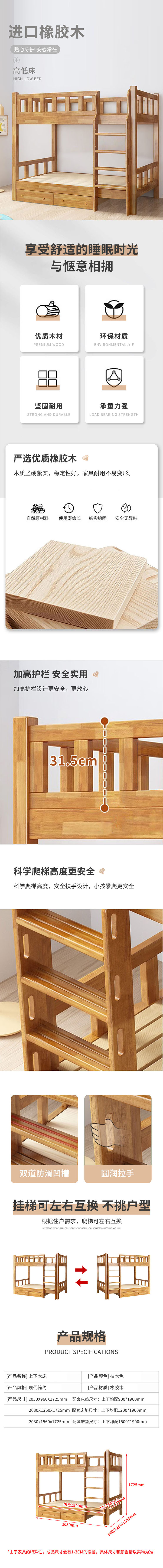 悦山 上下木床宿舍床(落地梯+双抽) YHb1-15 2030*960*1725mm 柚木色(单位:张)