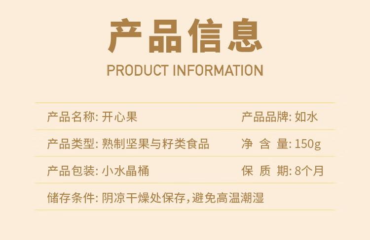 如水 开心果 坚果罐装 150g 白色(单位:罐)