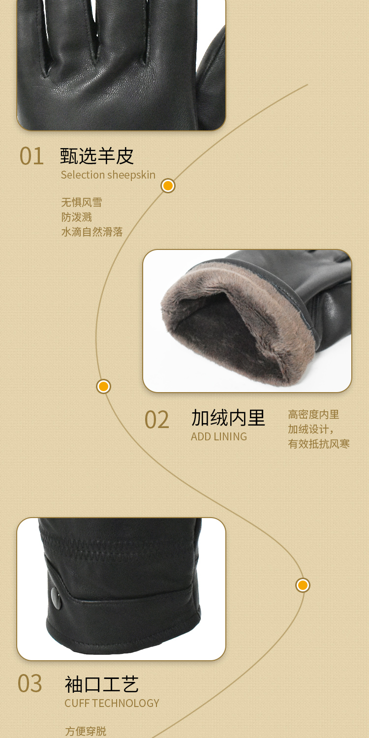 驰色 羊皮加绒保暖手套 CS-GLOVE 037 1双 自然色(单位:双)