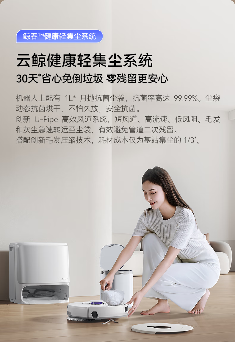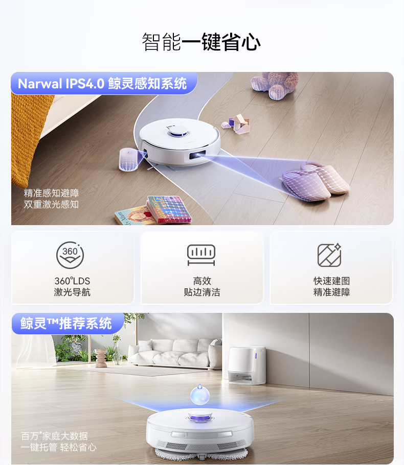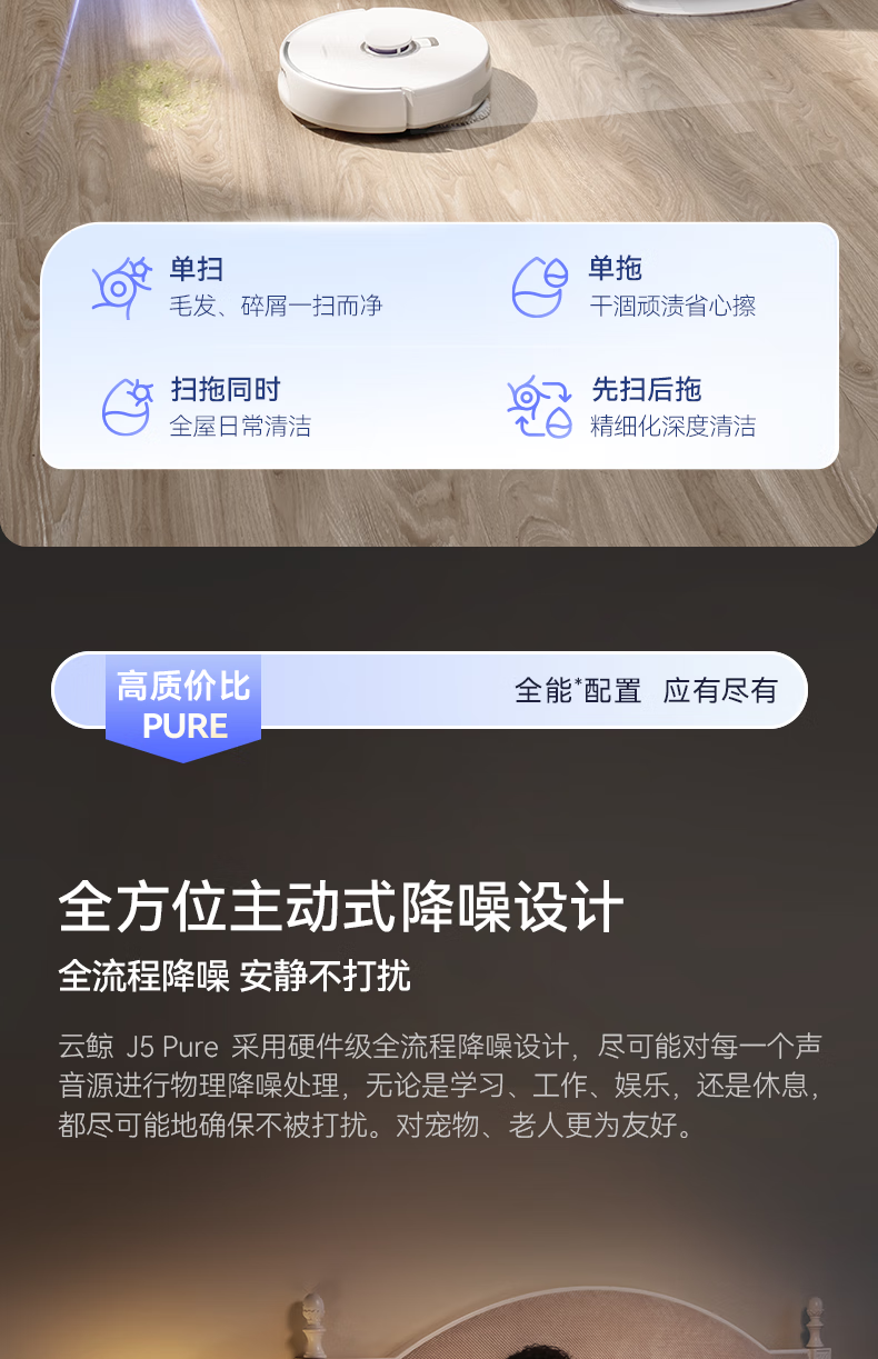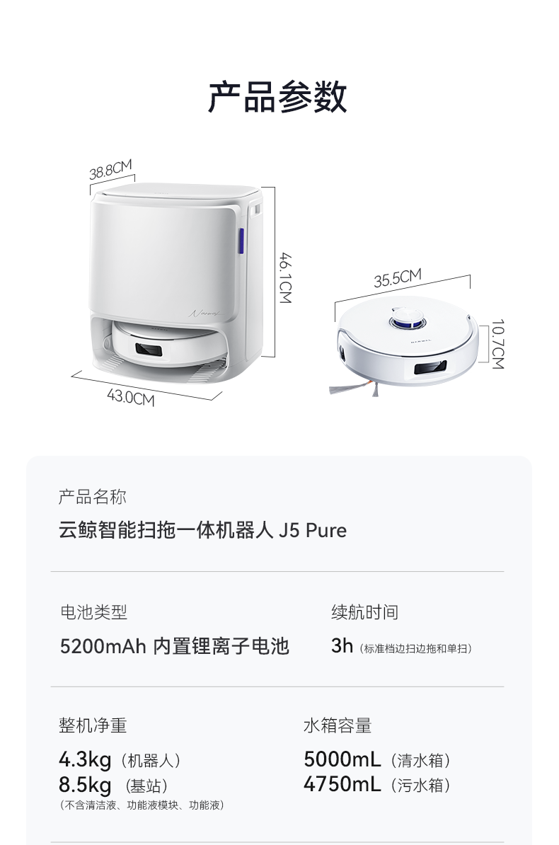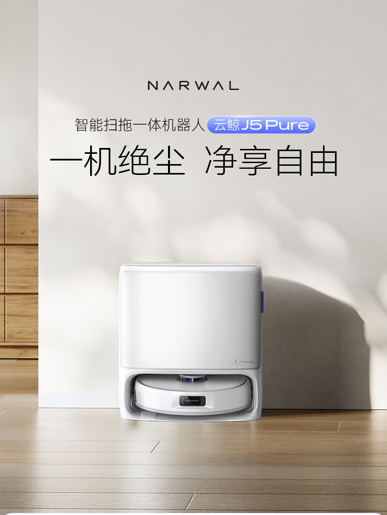 云鲸(NARWAL) 扫地机器人 J5 Pure水箱版 65W 白色(单位:台)