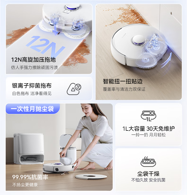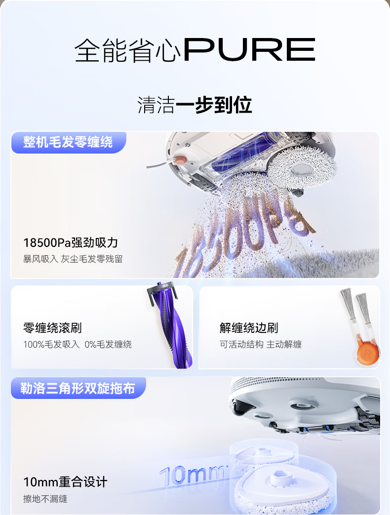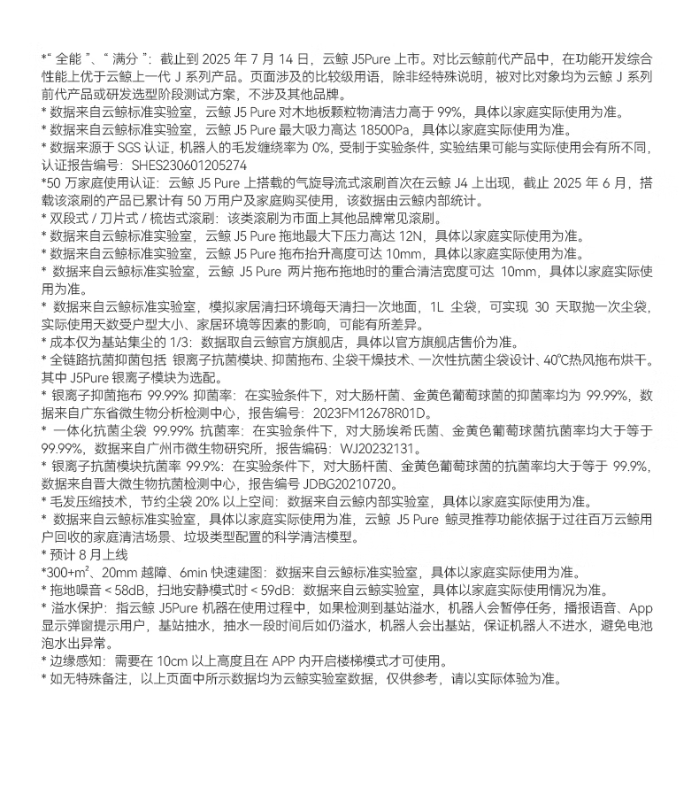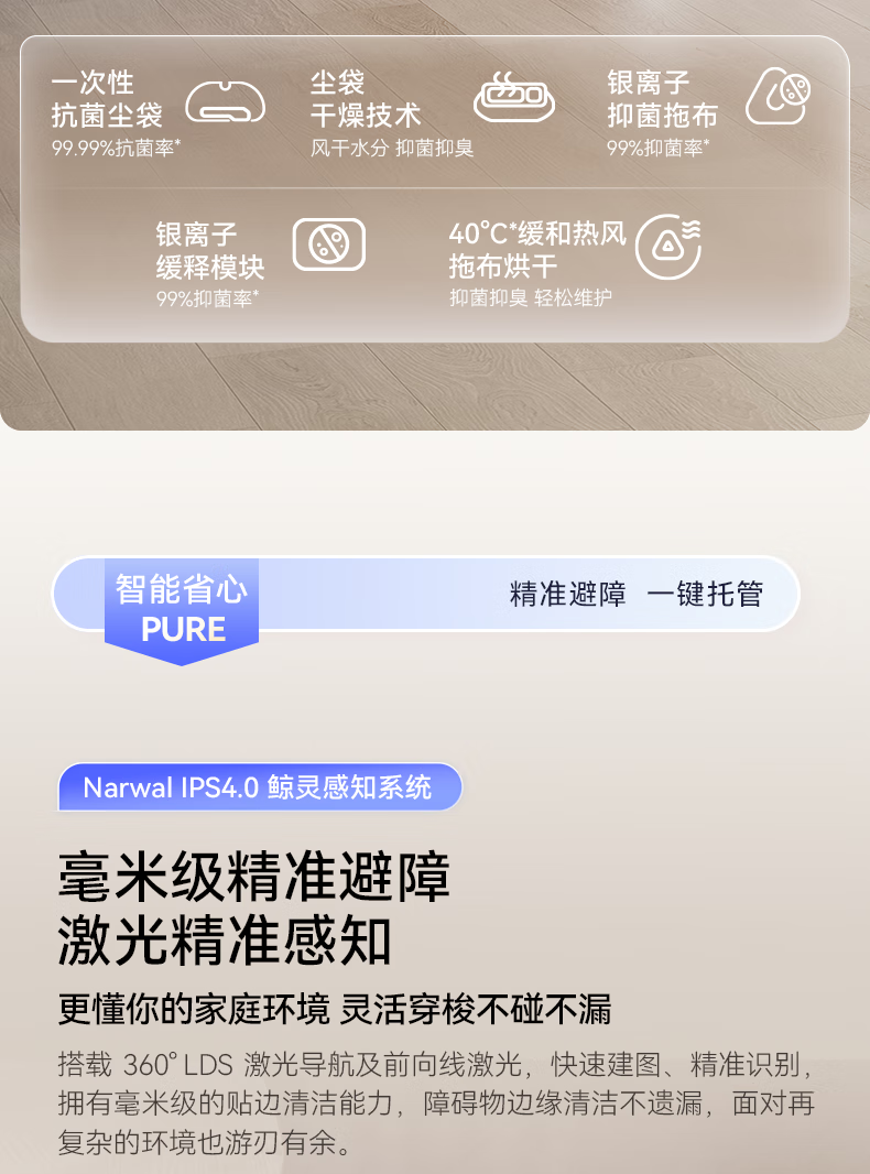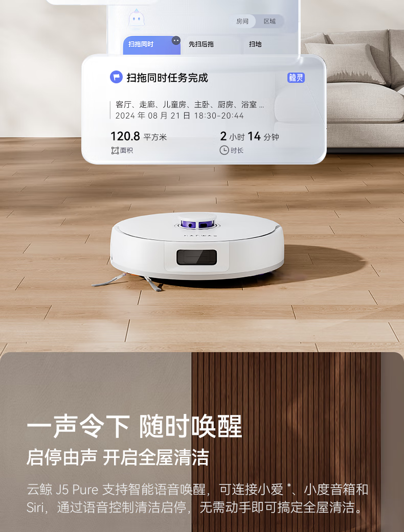 云鲸(NARWAL) 扫地机器人 J5 Pure水箱版 65W 白色(单位:台)
