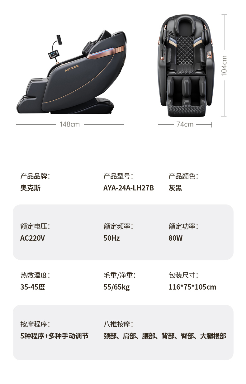 奥克斯(AUX) 按摩椅 AYA-24A-LH27B 80W 蓝色(单位:台)