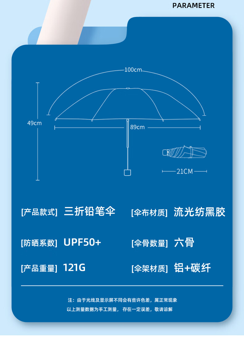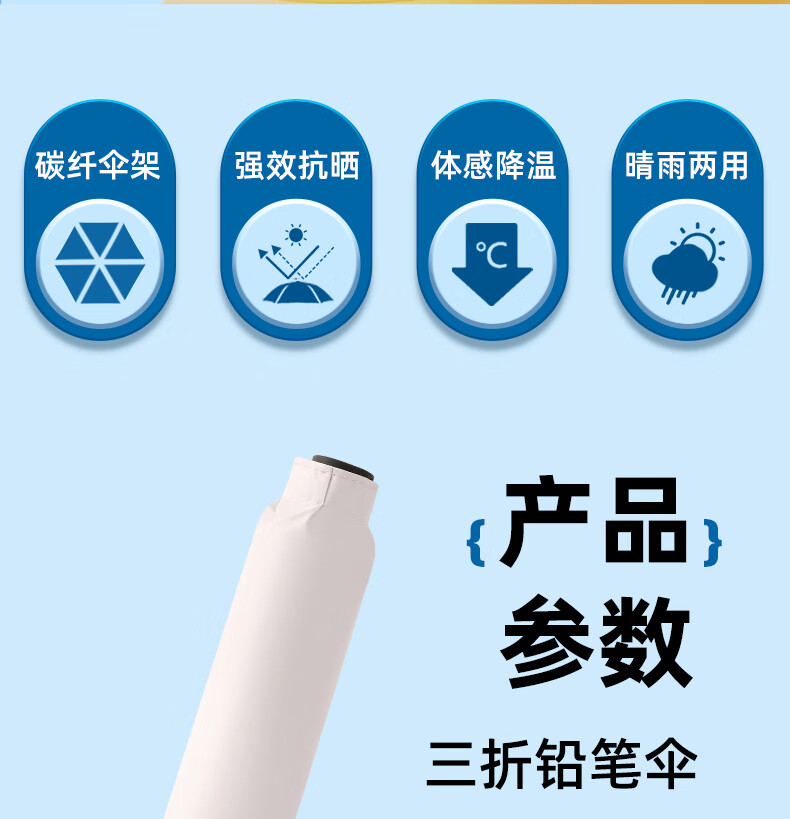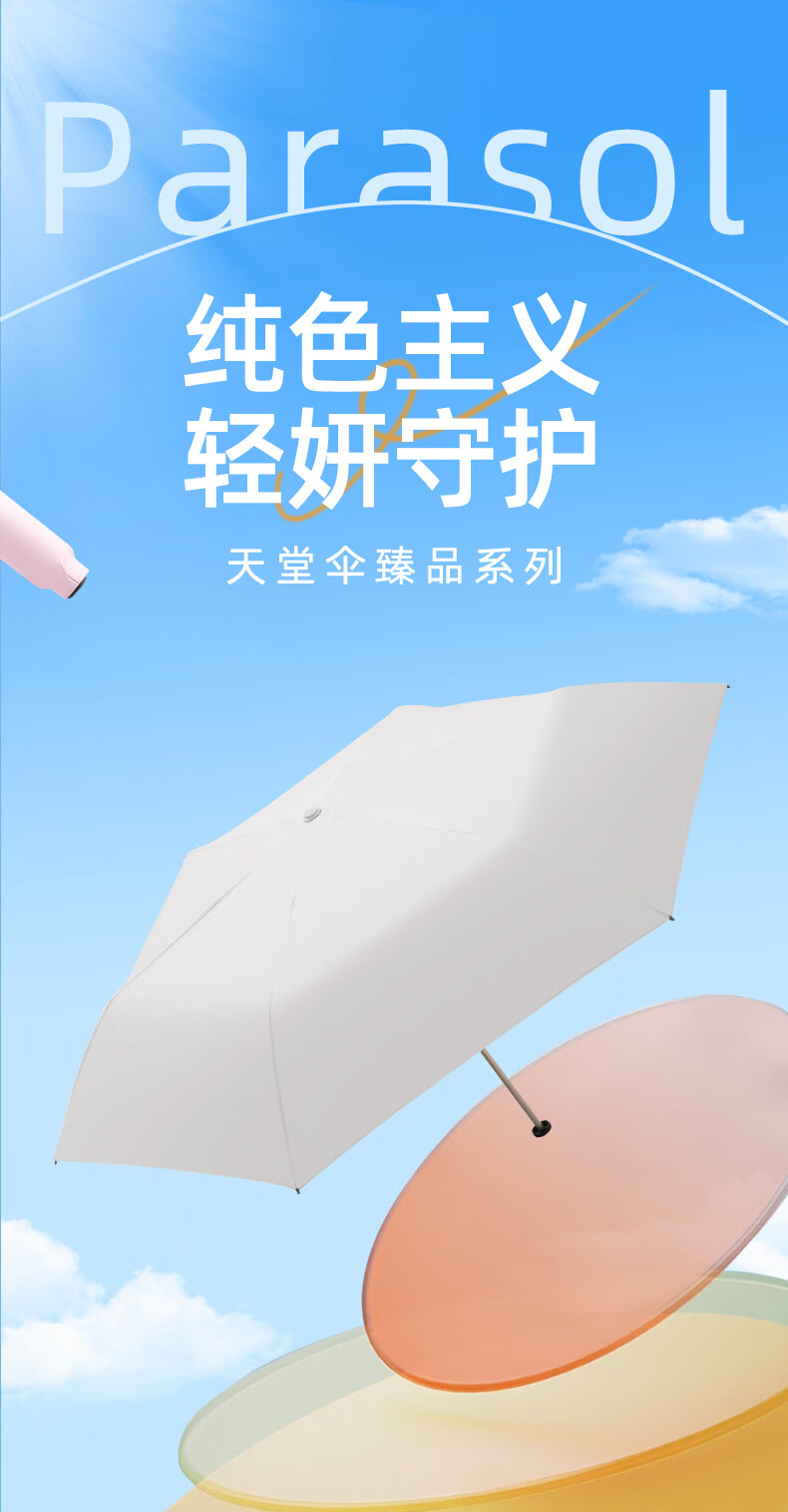 天堂 超轻黑胶防晒抗UV遮阳伞 37518E 50cmX6骨 鸣沙米(单位:把)