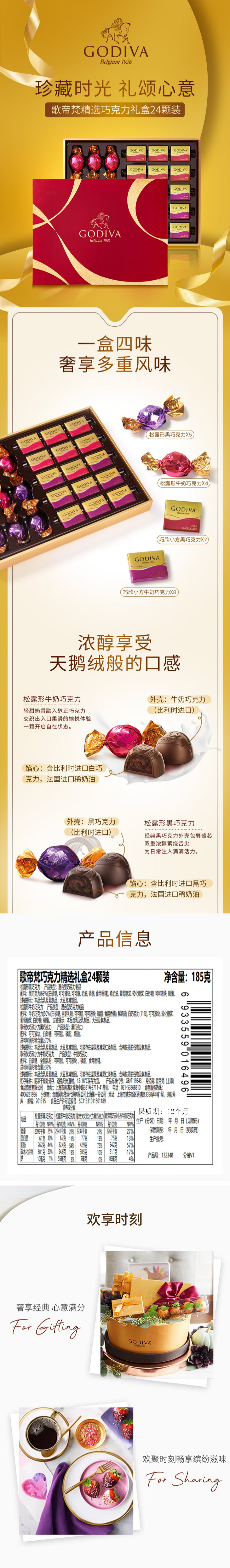 歌帝梵(Godiva) 巧克力 精选礼盒24颗装 185g 红色(单位:盒)