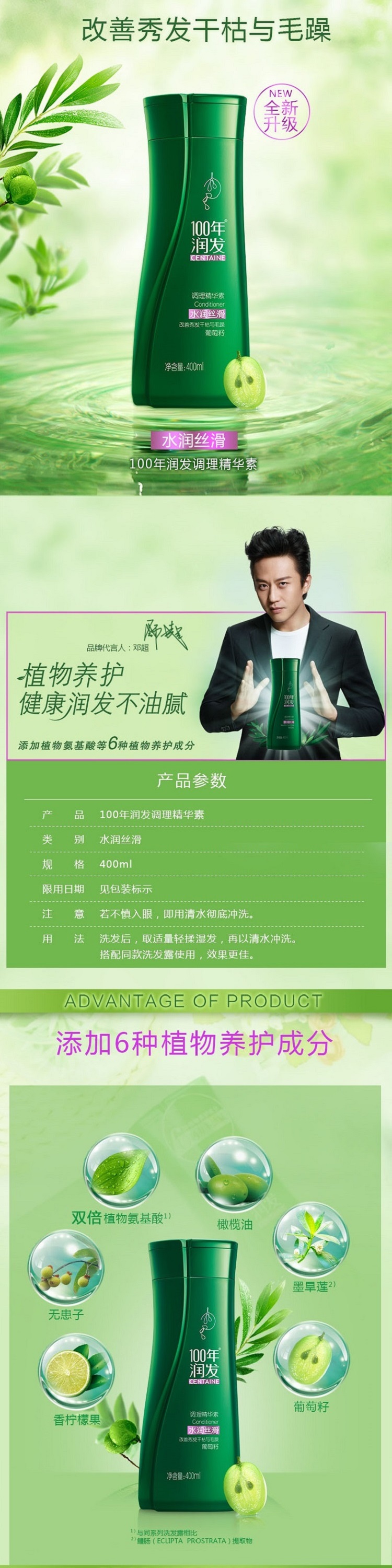 100年润发水润丝滑洗发露+精华素400ML(新疆、西藏、青海及港澳台地区不发货)400ml+400ml 图片色 图片色