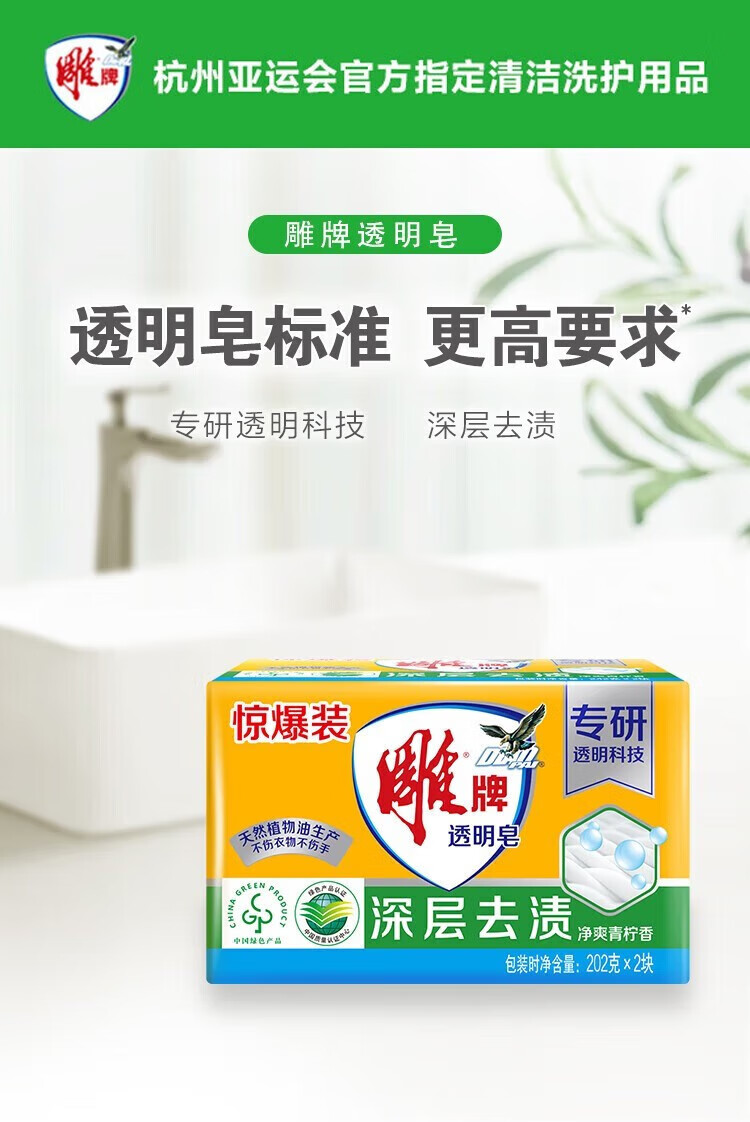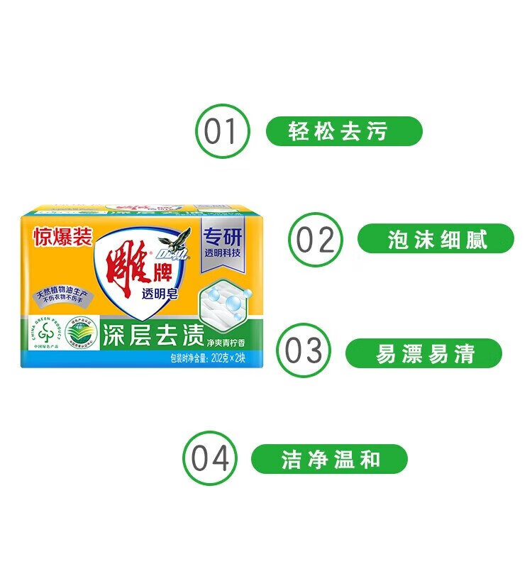 雕牌 净爽青柠香 透明皂 202g*2块/组 (单位:组) 黄色