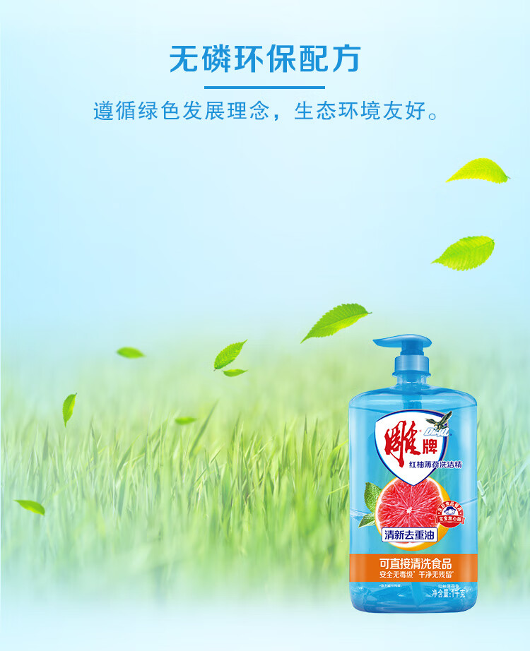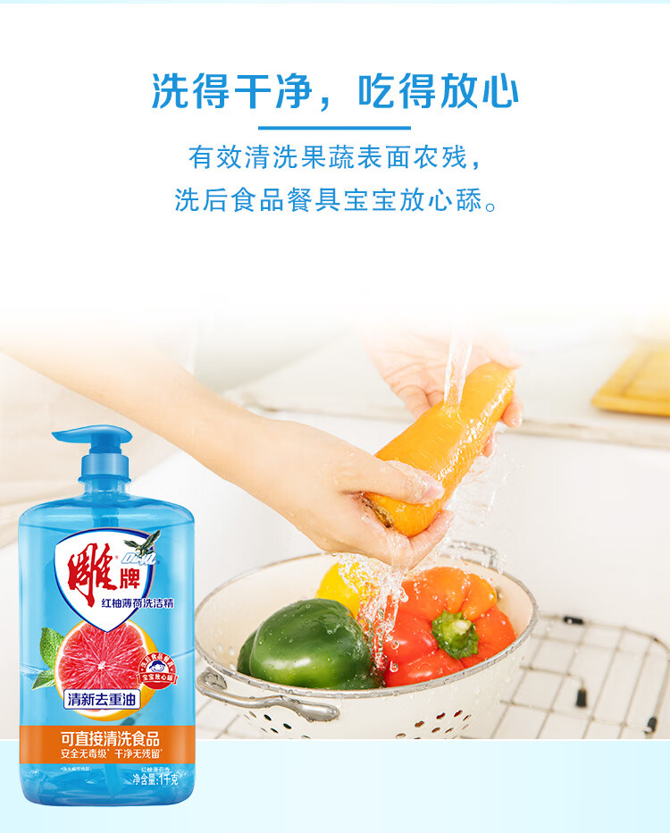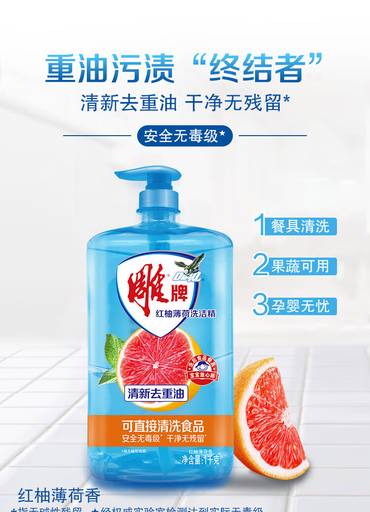 雕牌 红柚薄荷 洗洁精 1千克 (单位: 瓶) 蓝色