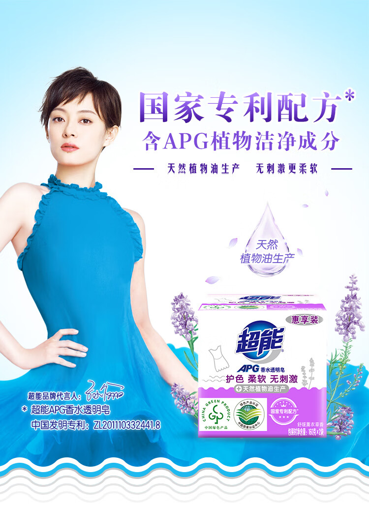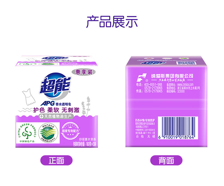 超能 薰衣草香护色柔软不刺激 APG香水透明皂 160g*2块 混色(单位:组)