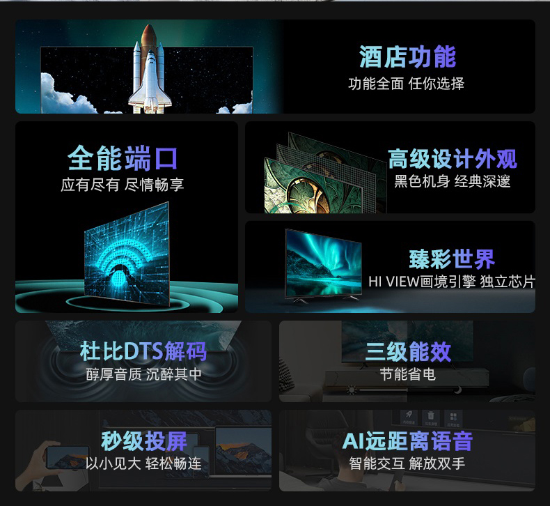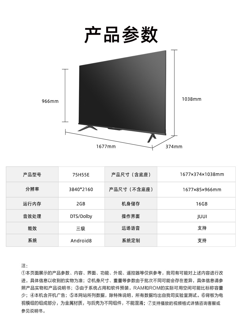 海信(Hisense)75H55E 75英寸 超高清4K 智能液晶平板电视机 家用商用电视 台 黑色
