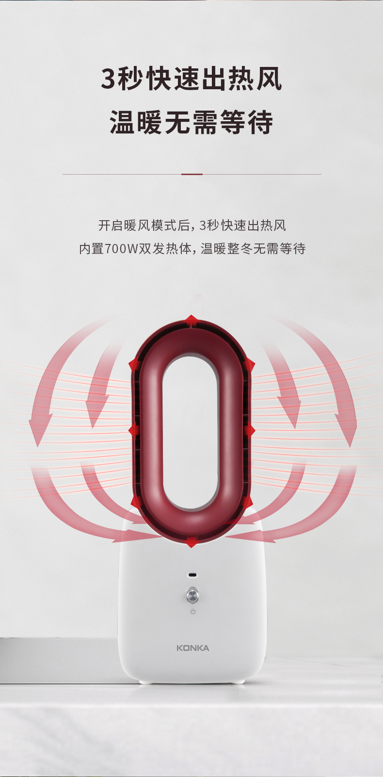 康佳冷暖两用无叶暖风扇KH-NFJ01W(单位:台) 白红色