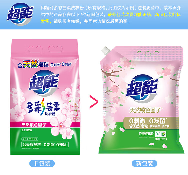 超能 多彩芸柔 2.88kg/袋 洗衣粉 粉色(单位:袋)