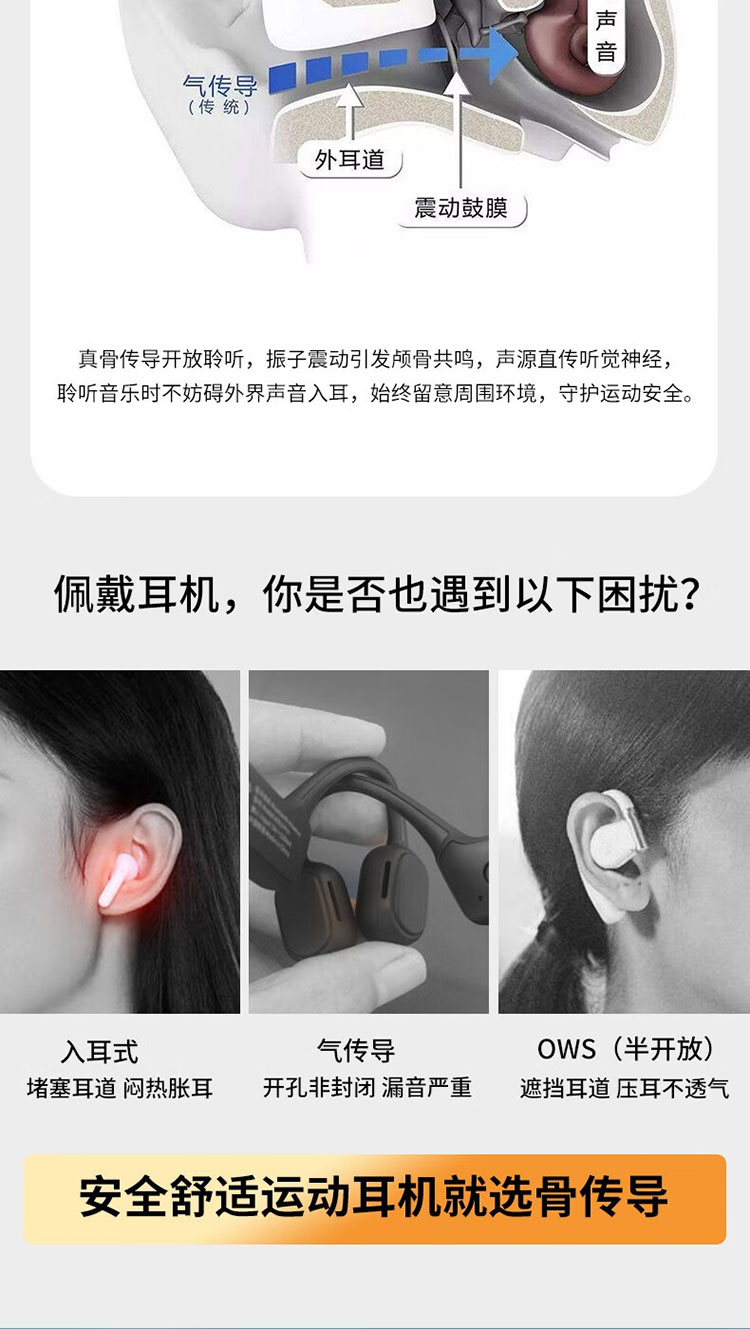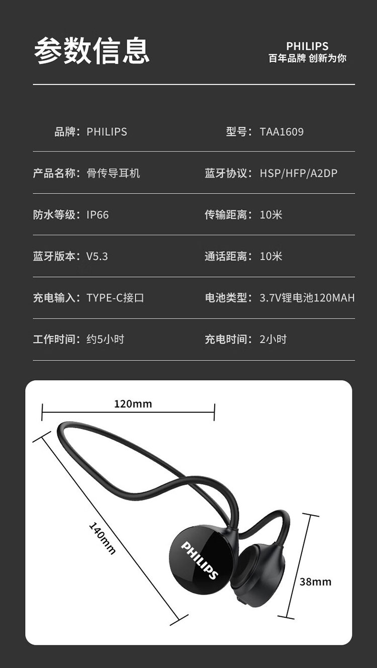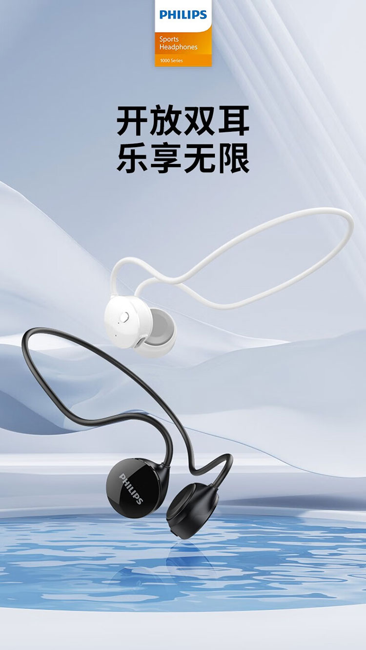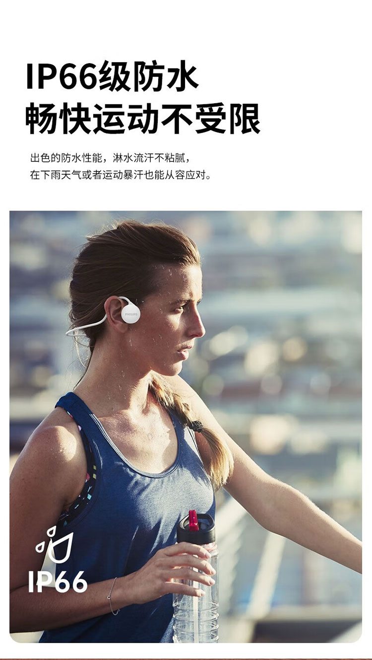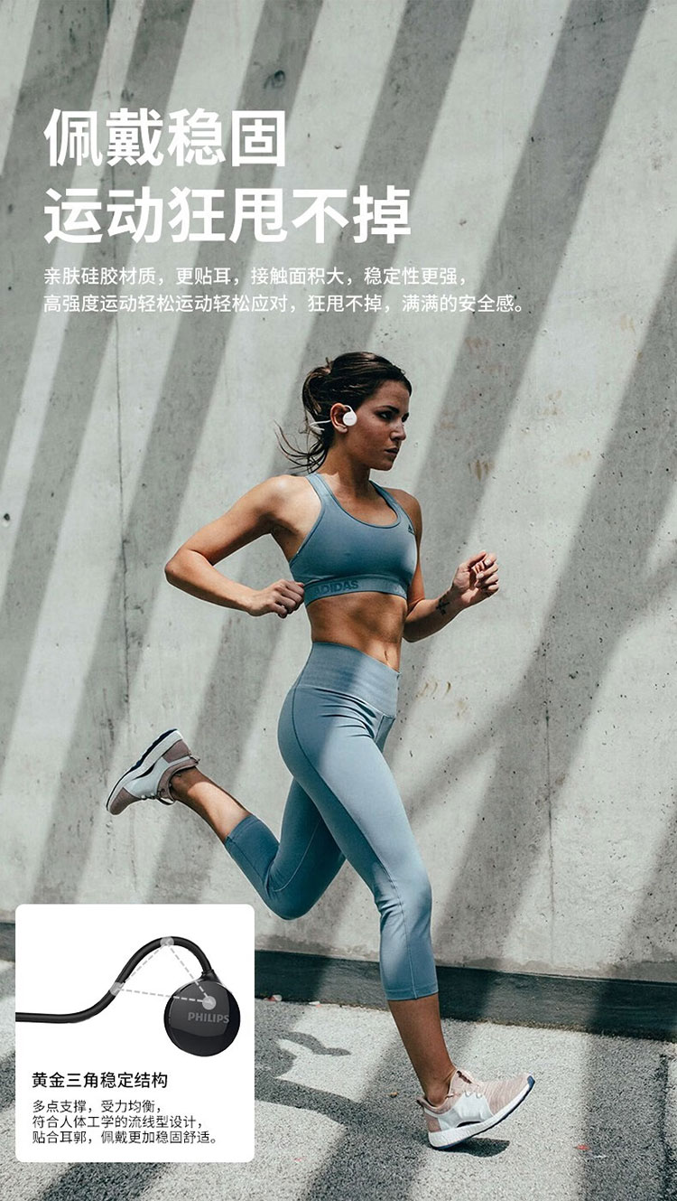飞利浦骨传导耳机蓝牙无线开放式不入耳运动户外挂耳式长续航骨传感音乐耳机TAA1609白(一个) 白色