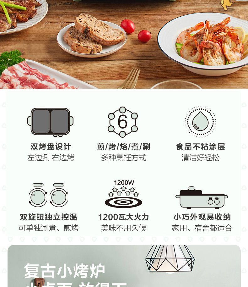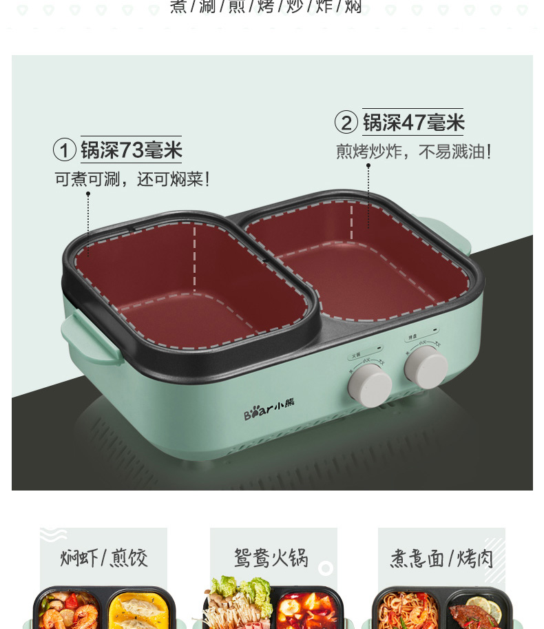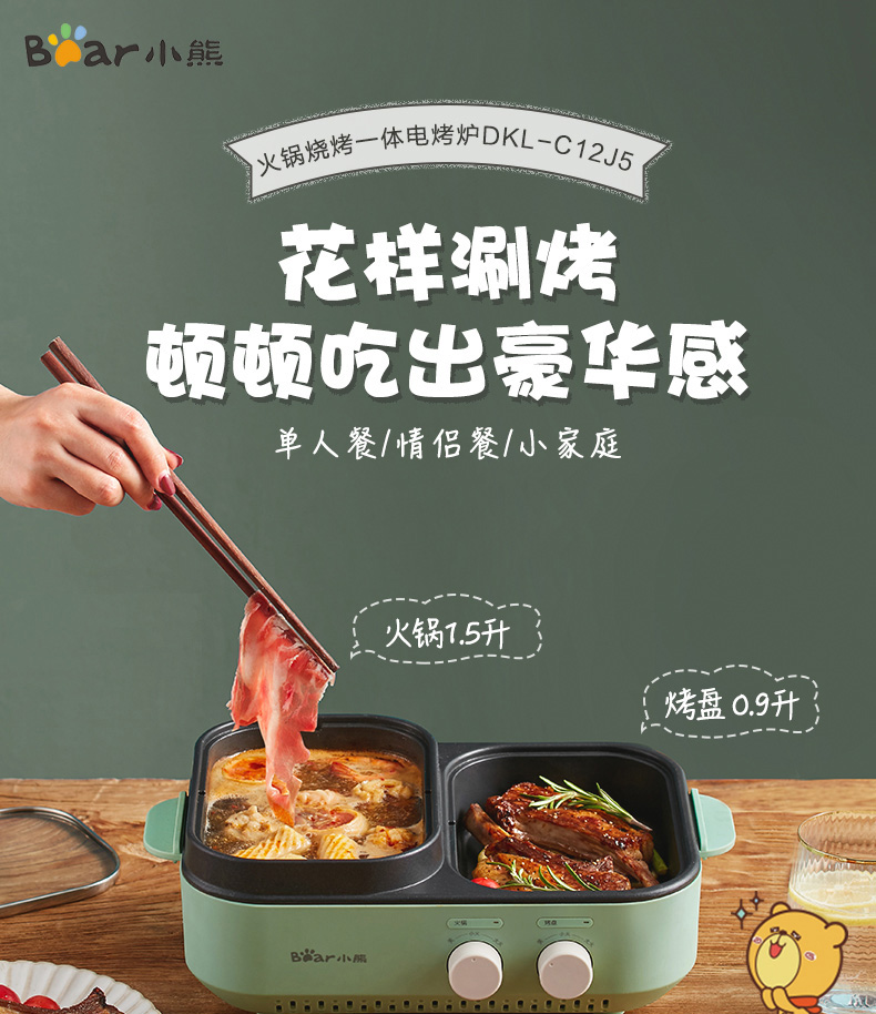 小熊 DKL-C12J5 1.5L 烤煮一体机电烧烤炉 (单位:台) 绿色