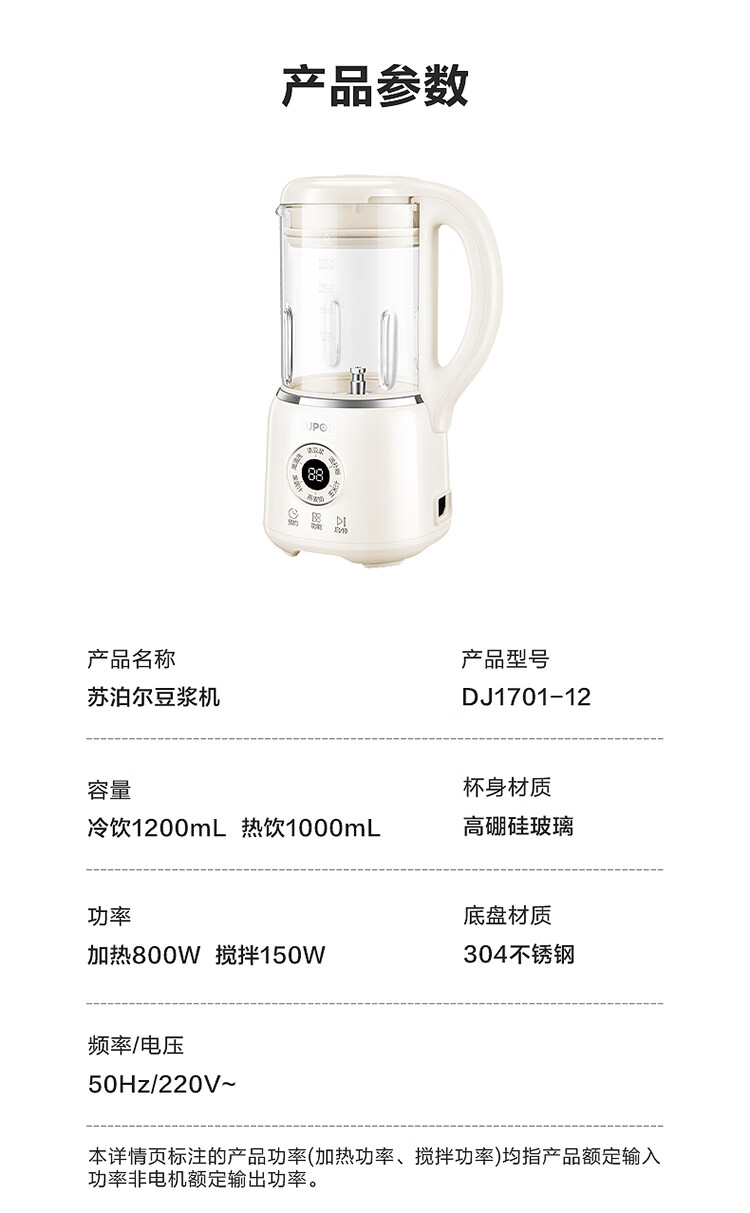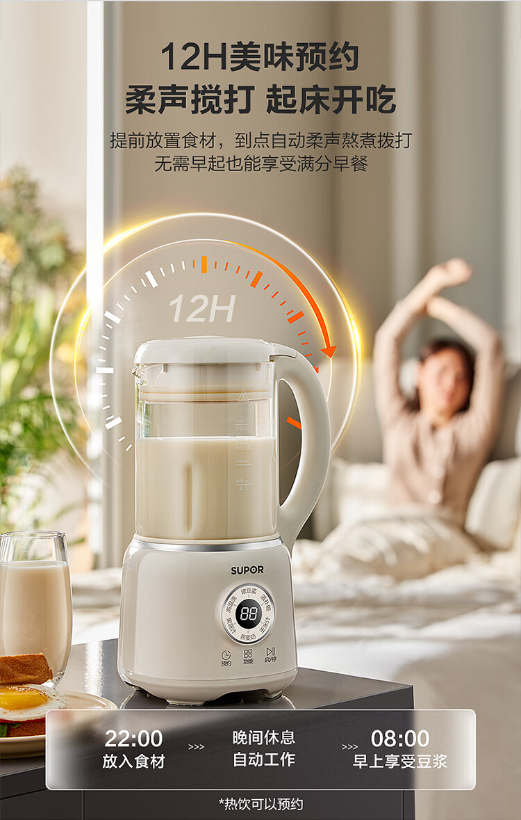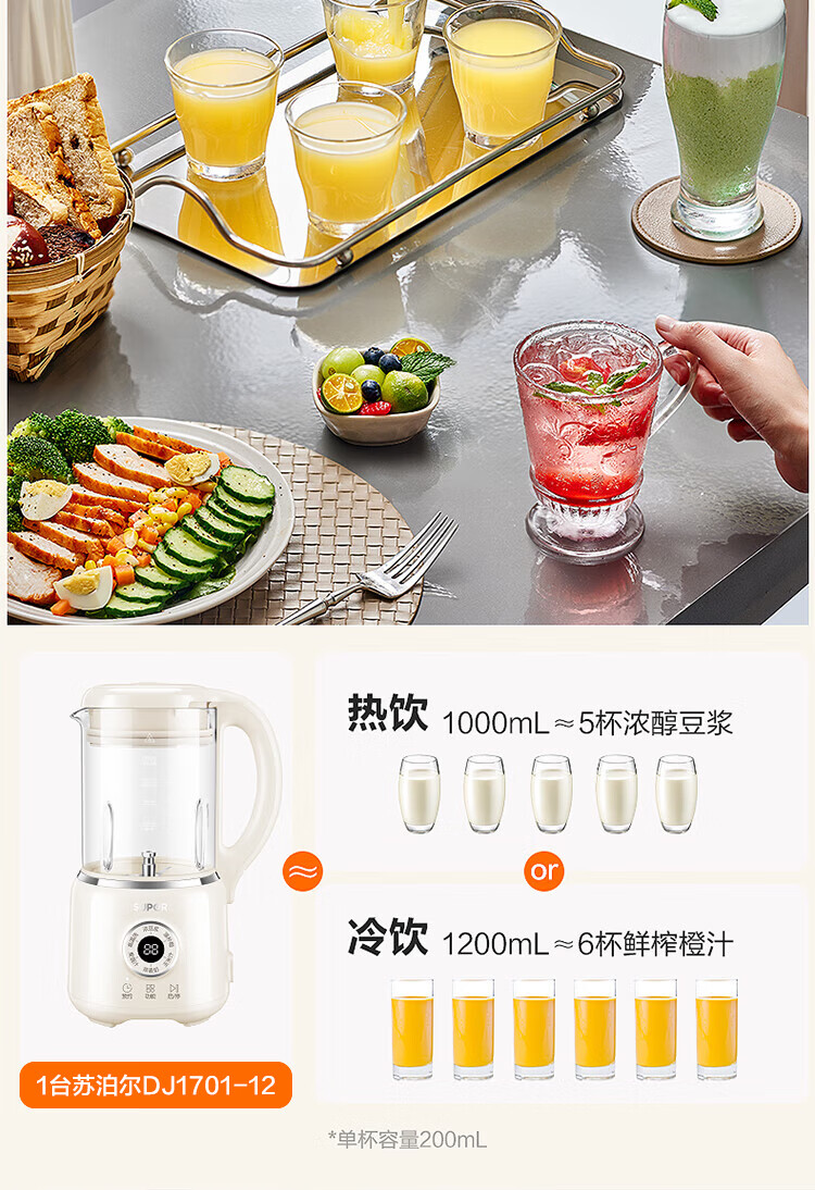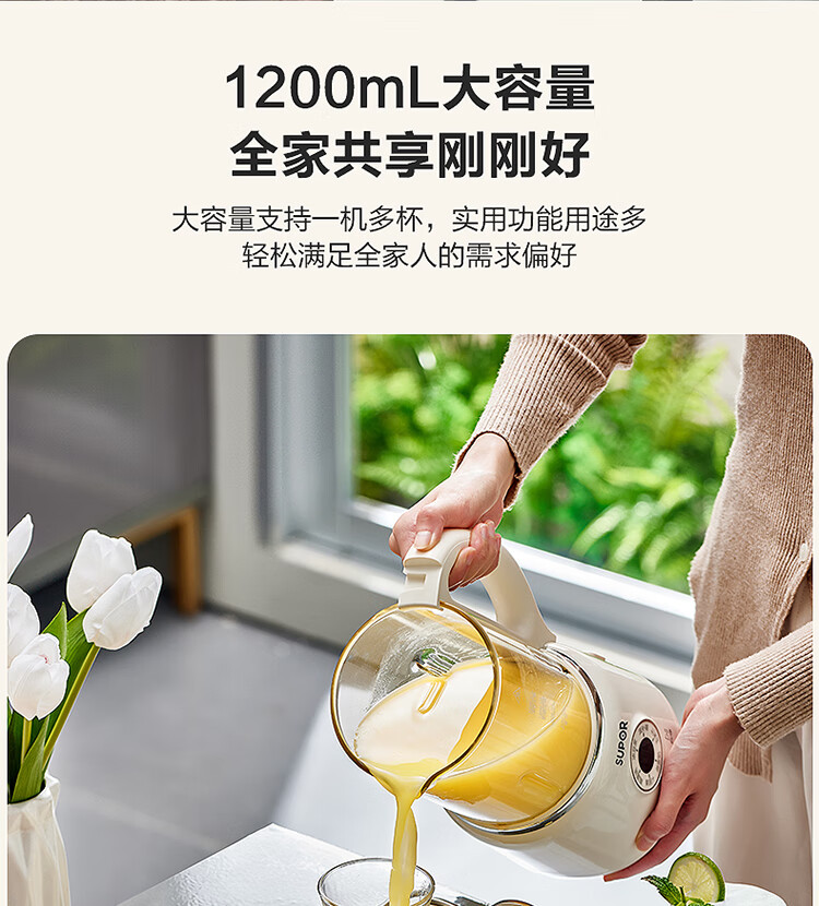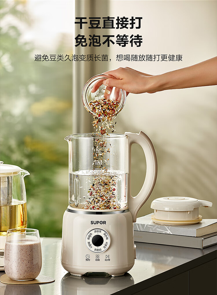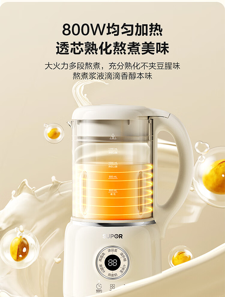 苏泊尔(SUPOR)低音破壁机 可拆洗 1.2L家用豆浆机全自动DJ701-12/台 米黄色