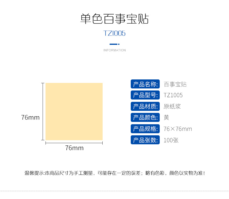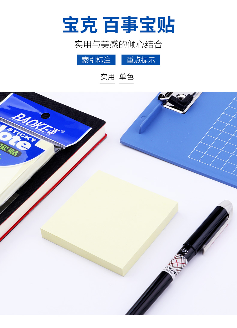 宝克(BAOKE)TZ1005 76*76mm百事宝贴/便签条/便利贴/百事贴 5本/组 黄色
