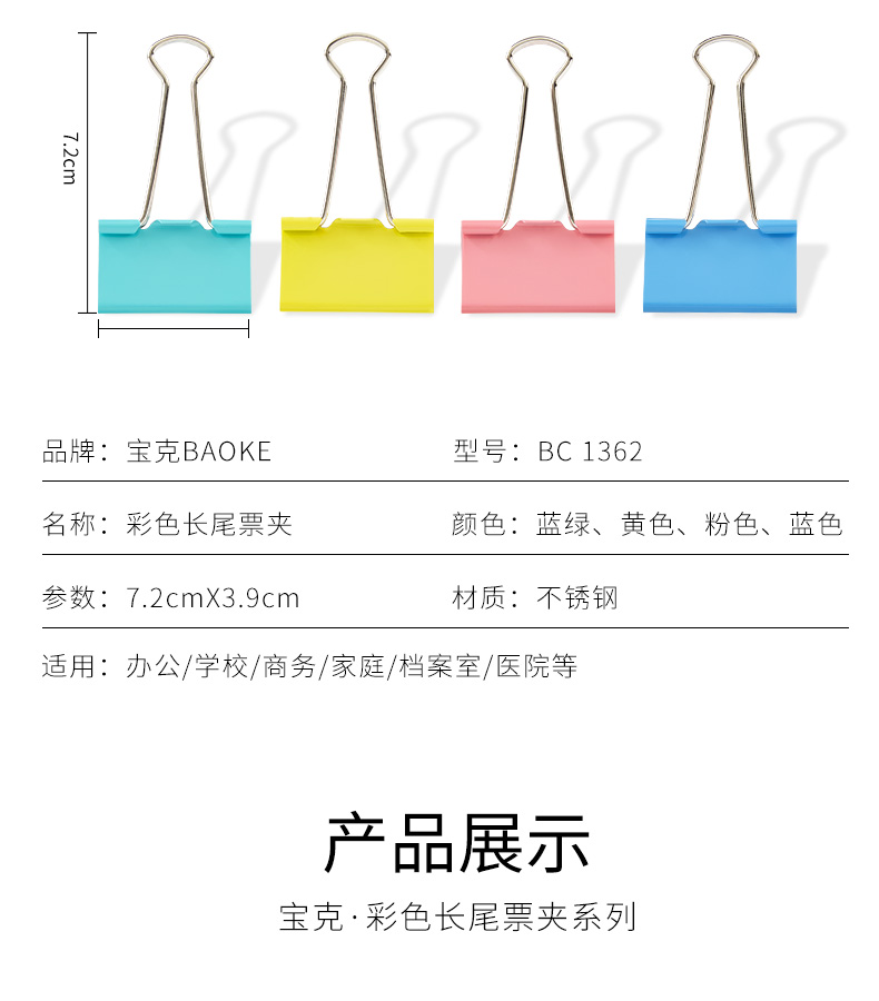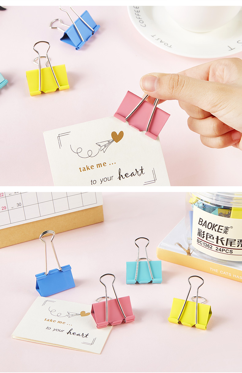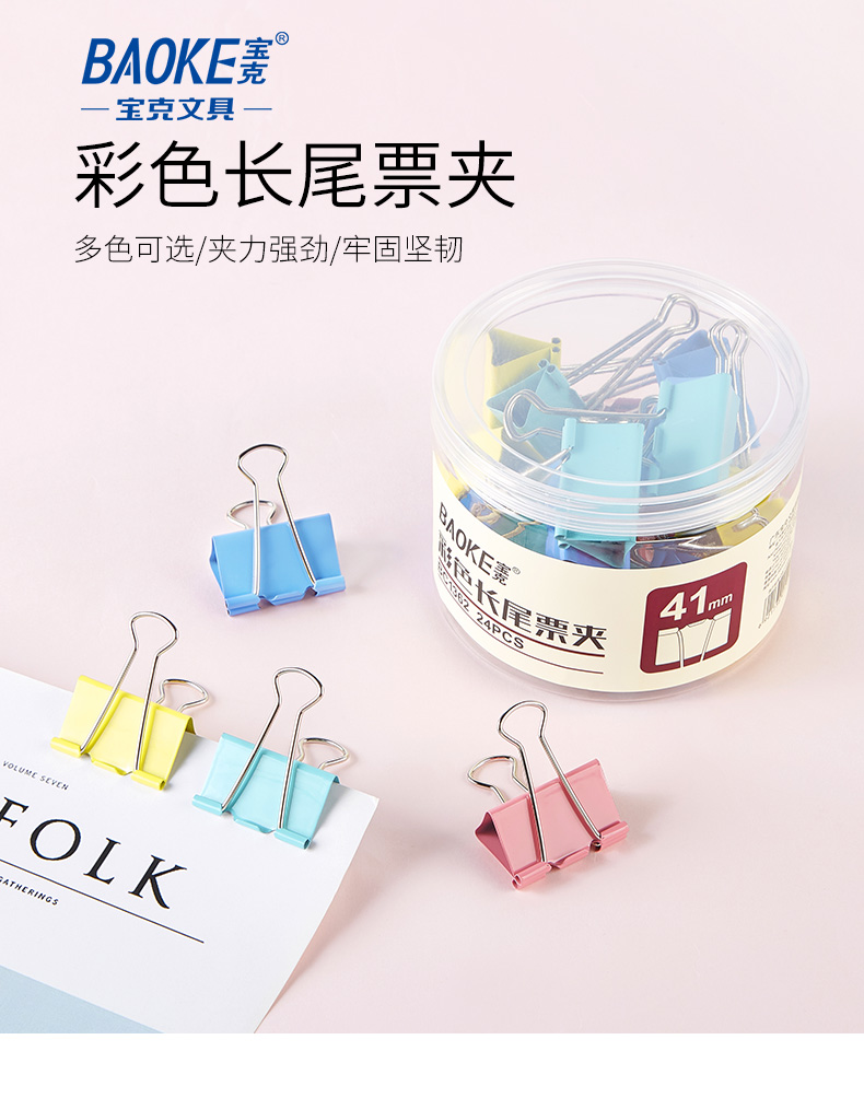 宝克(BAOKE)BC1362 41mm大号彩色长尾夹长尾票夹 24只/筒 2筒/组