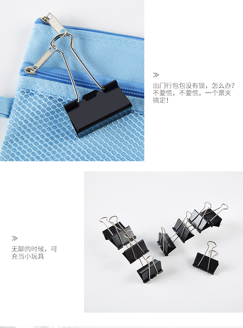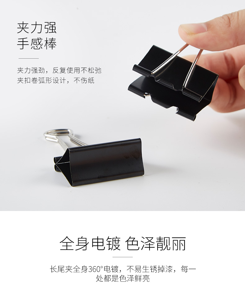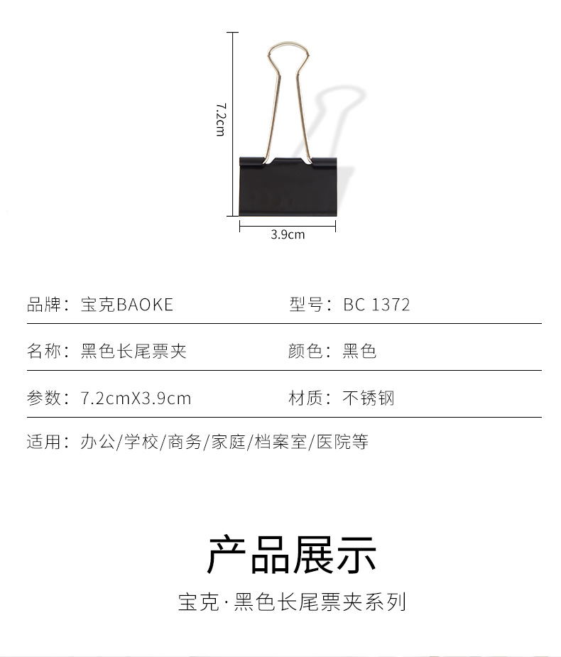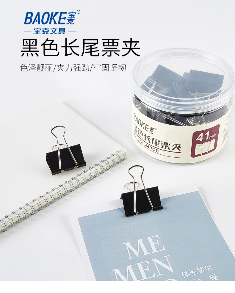 宝克(BAOKE)BC1372 41mm大号长尾夹票夹 黑色 24只/筒 2筒/组 黑色