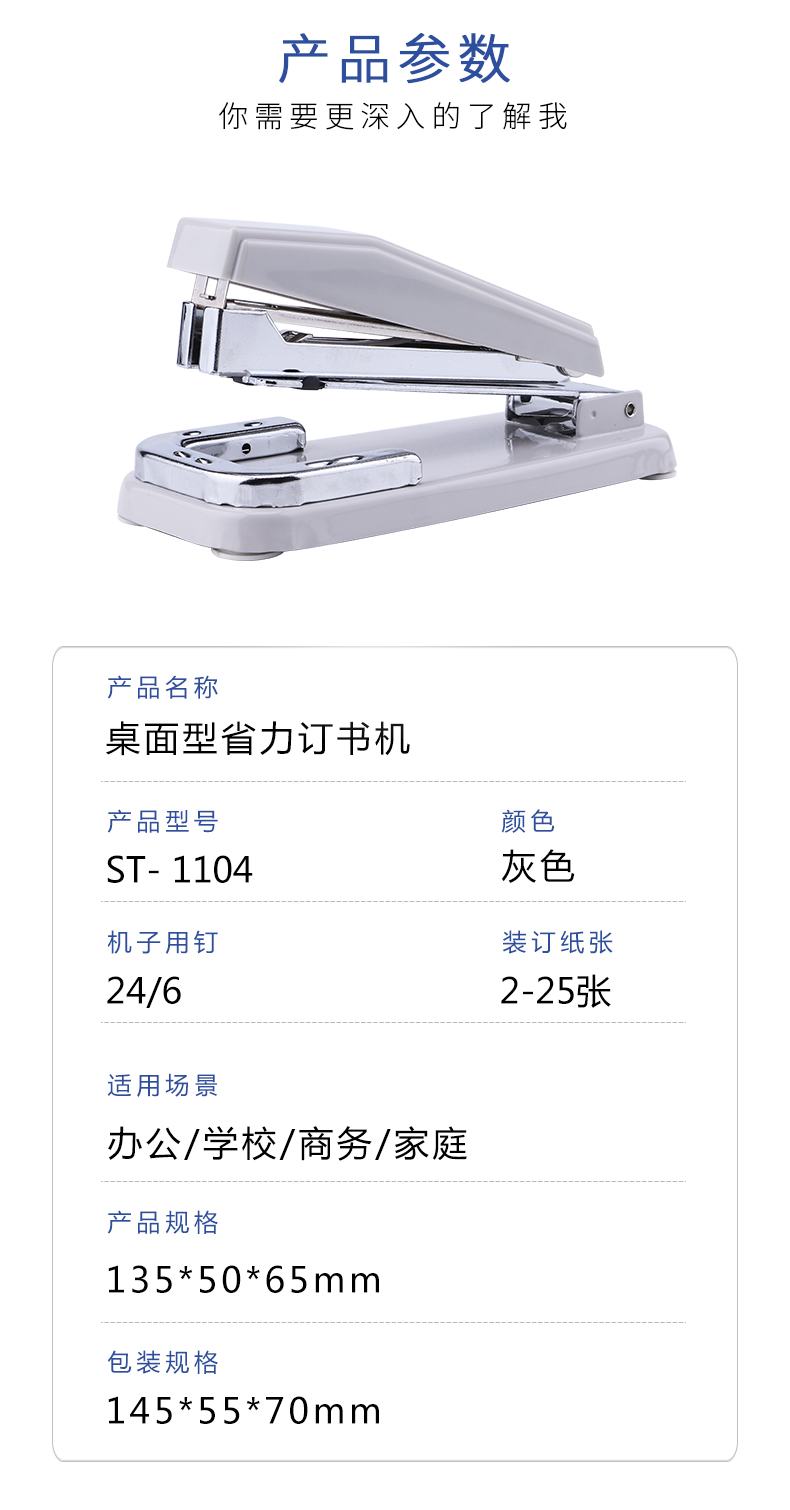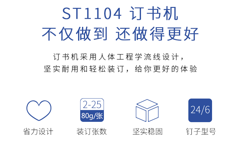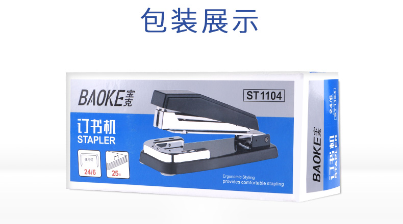 宝克(BAOKE)ST1104 品质耐用订书机/25页桌面型省力订书器 适配24/6钉 1个 混色