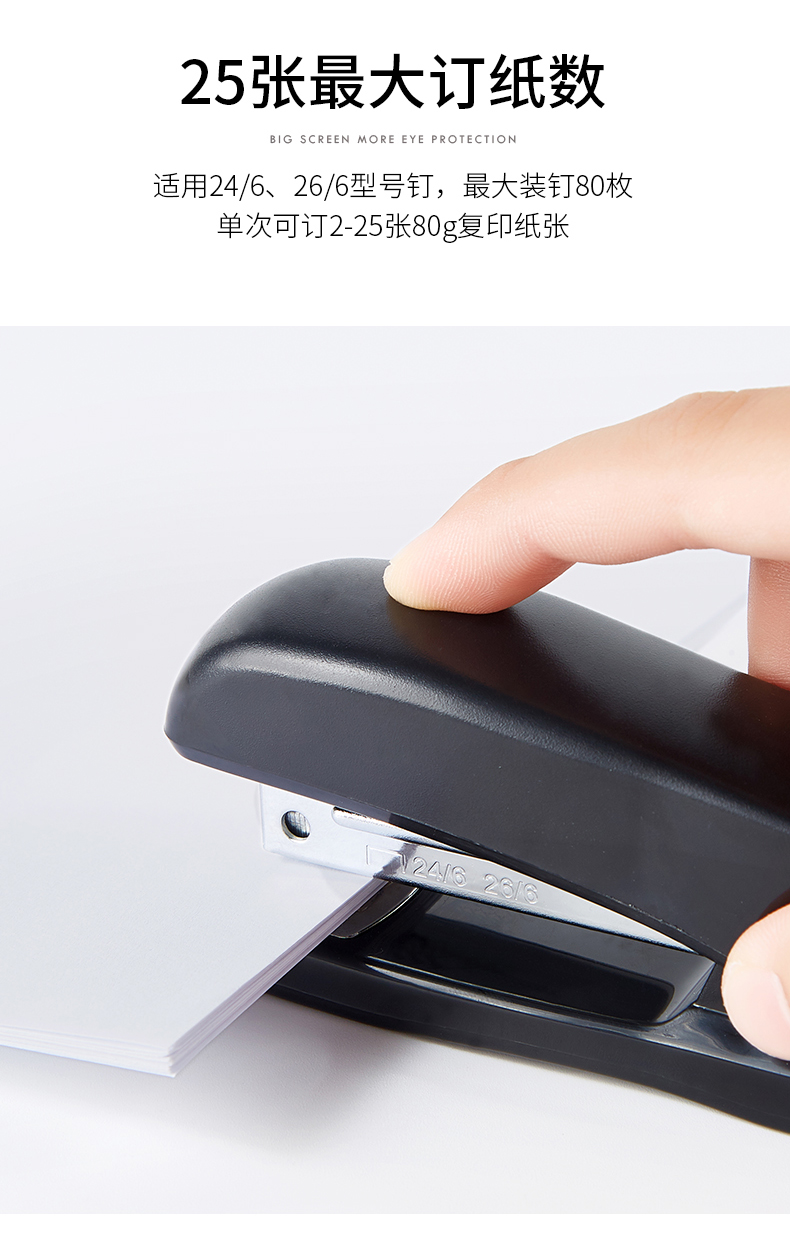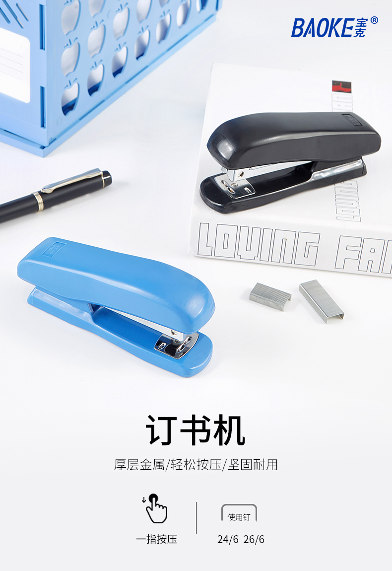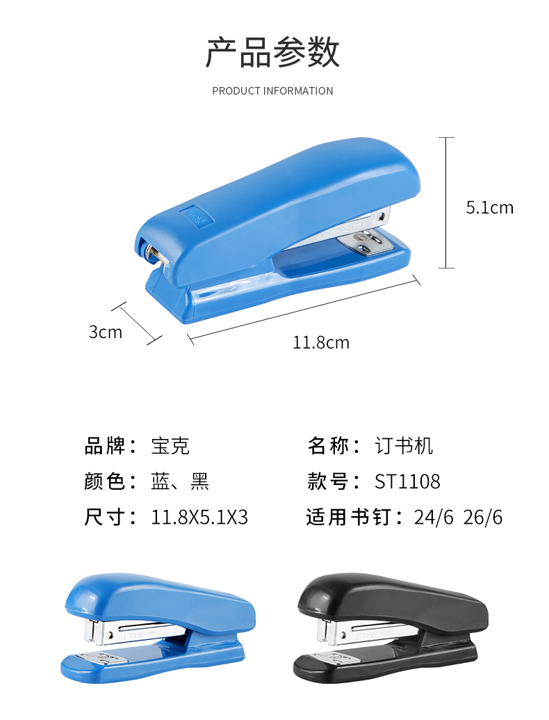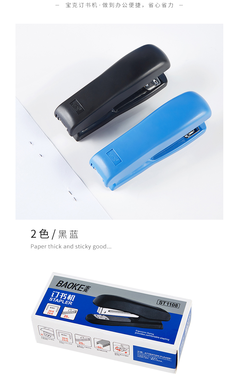宝克(BAOKE)ST1108 订书机订书器 适配24/6与26/6钉 1个 随机