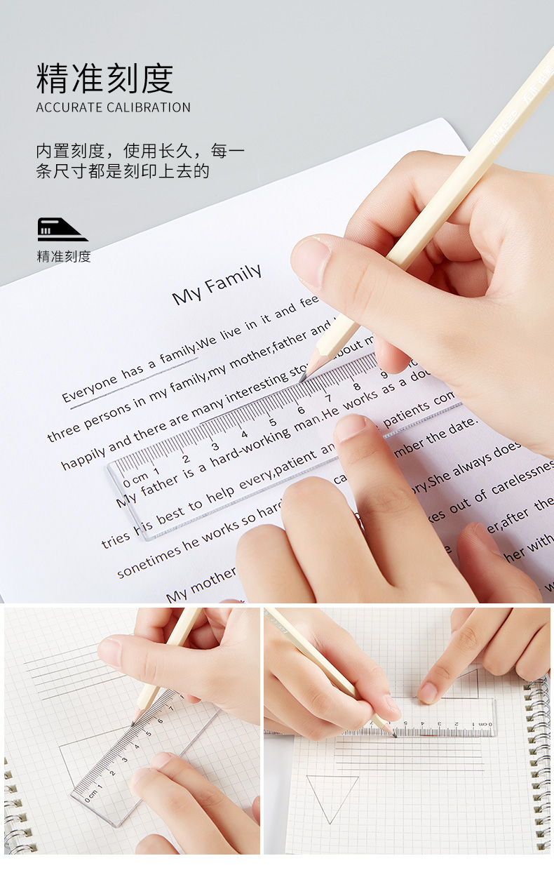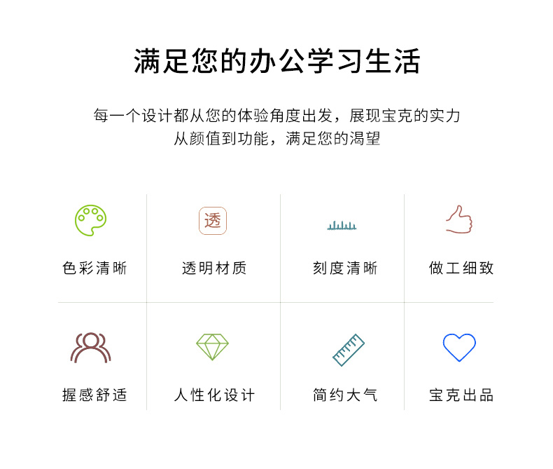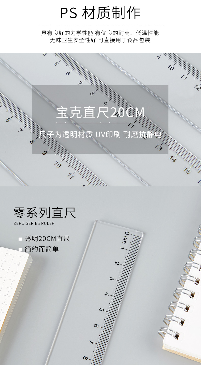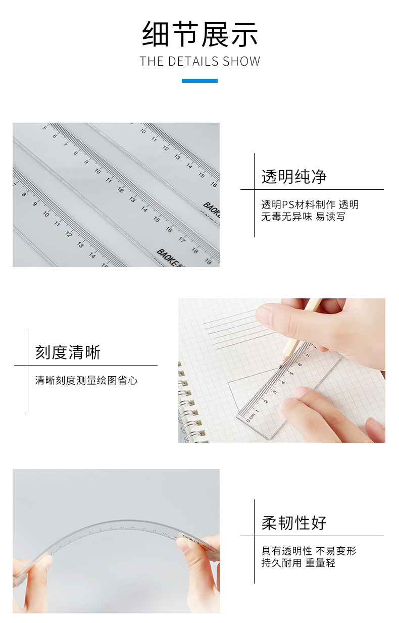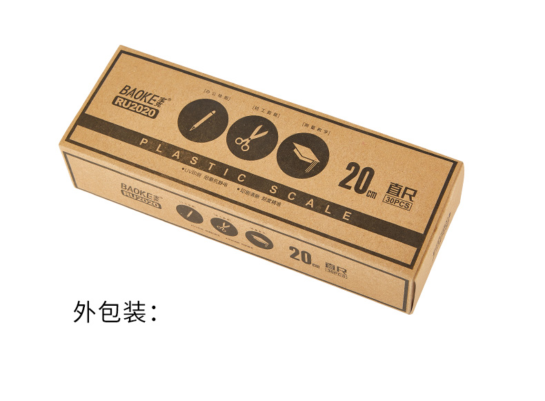 宝克(BAOKE)RU2020 20cm直尺 办公通用直尺透明尺子 10把/组 透明