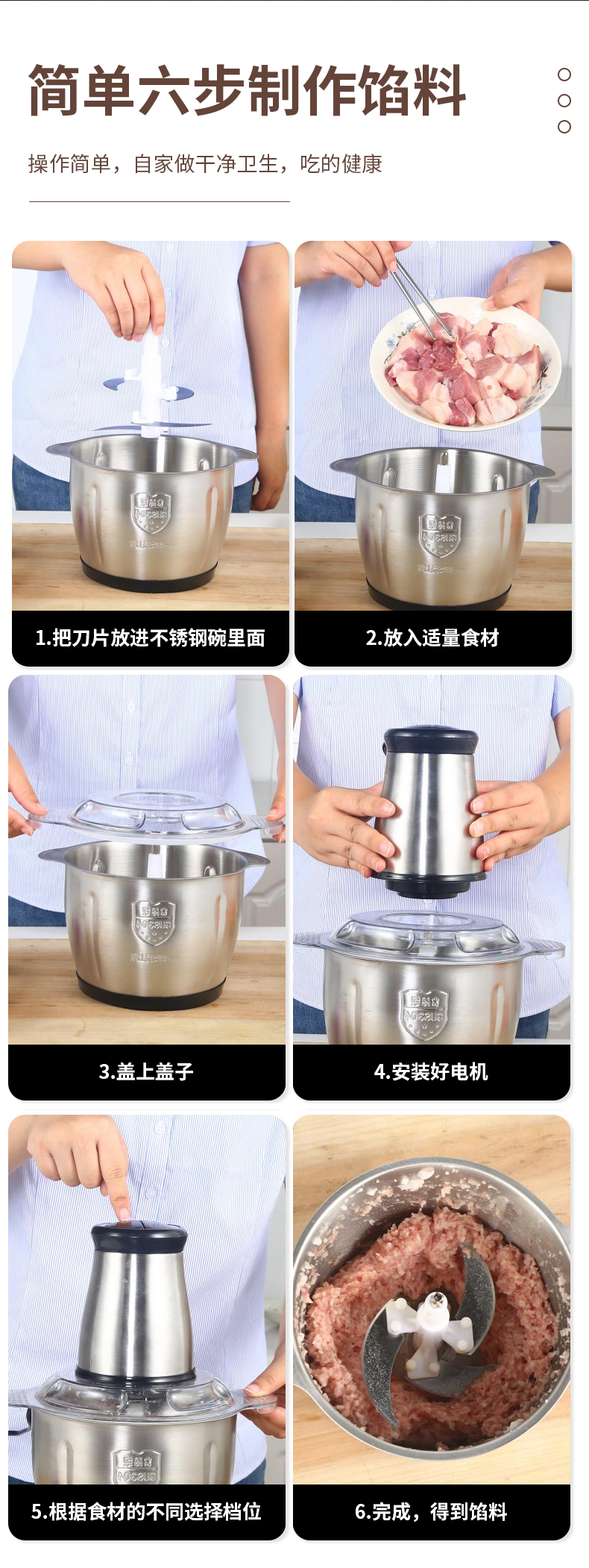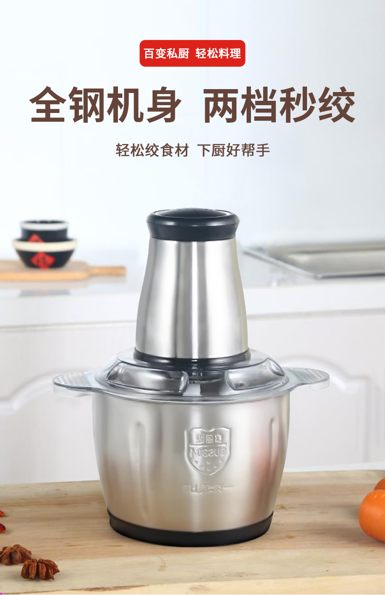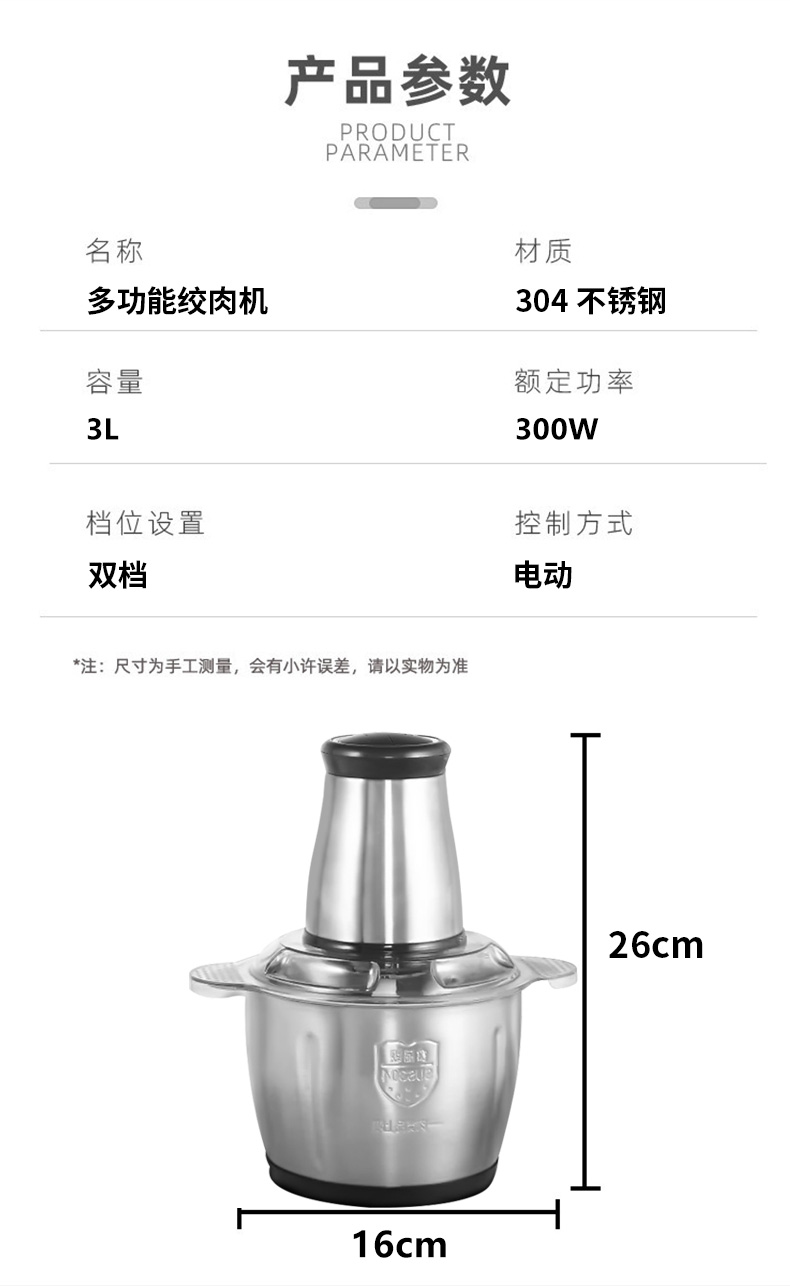 翰乐多功能绞肉机-3L(不锈钢碗)(套) 银色