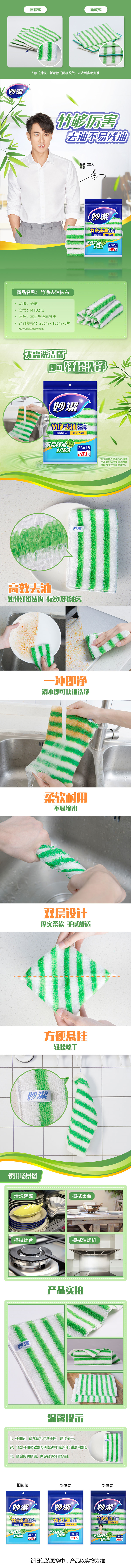 妙洁竹净去油抹布2+1片装(23cm*18cm*3片) 清新色