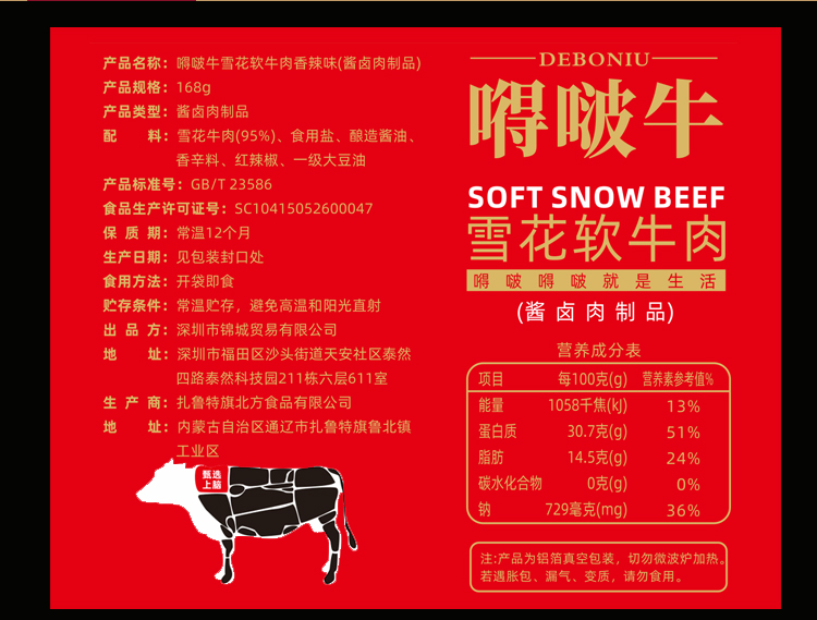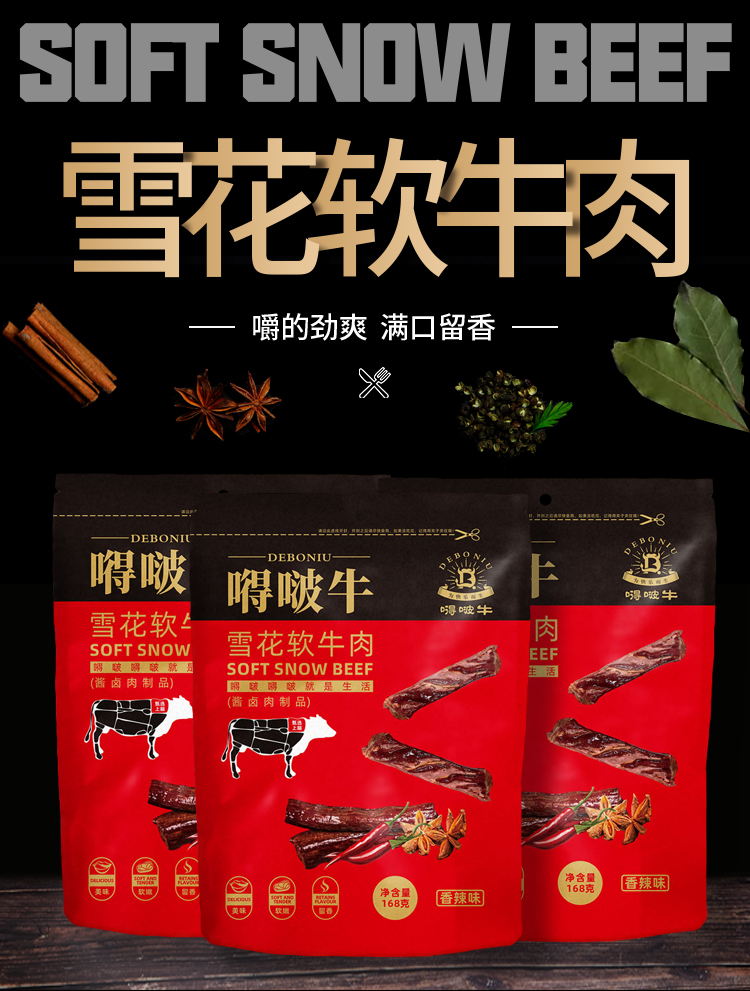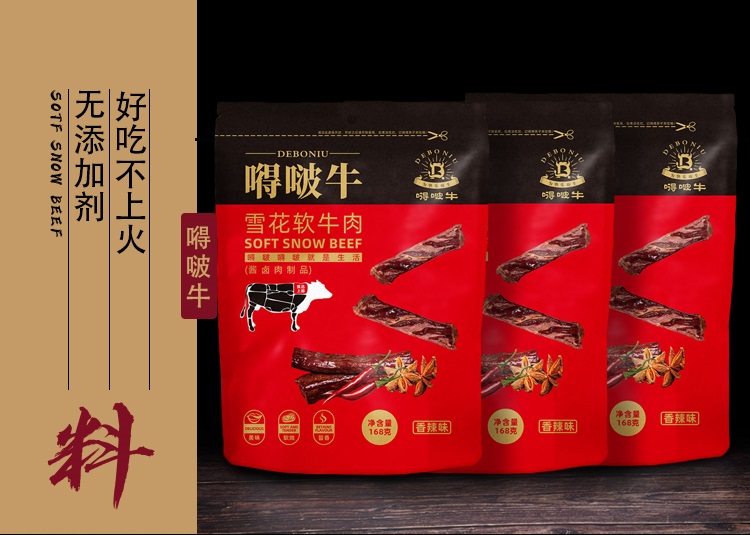 嘚啵牛雪花软牛肉香辣味168g/袋 莓果色