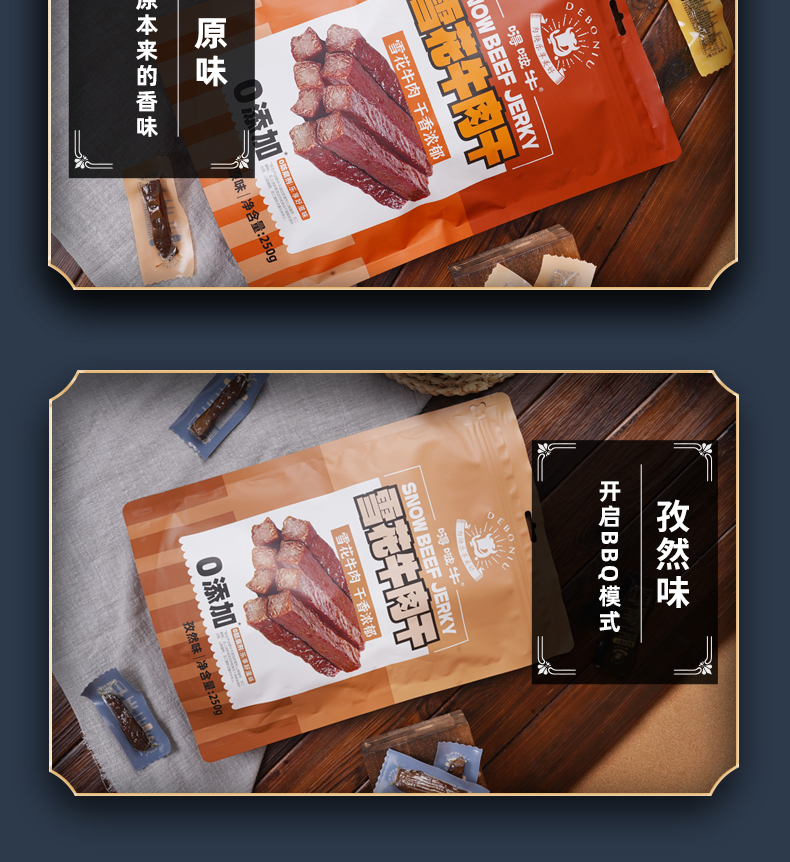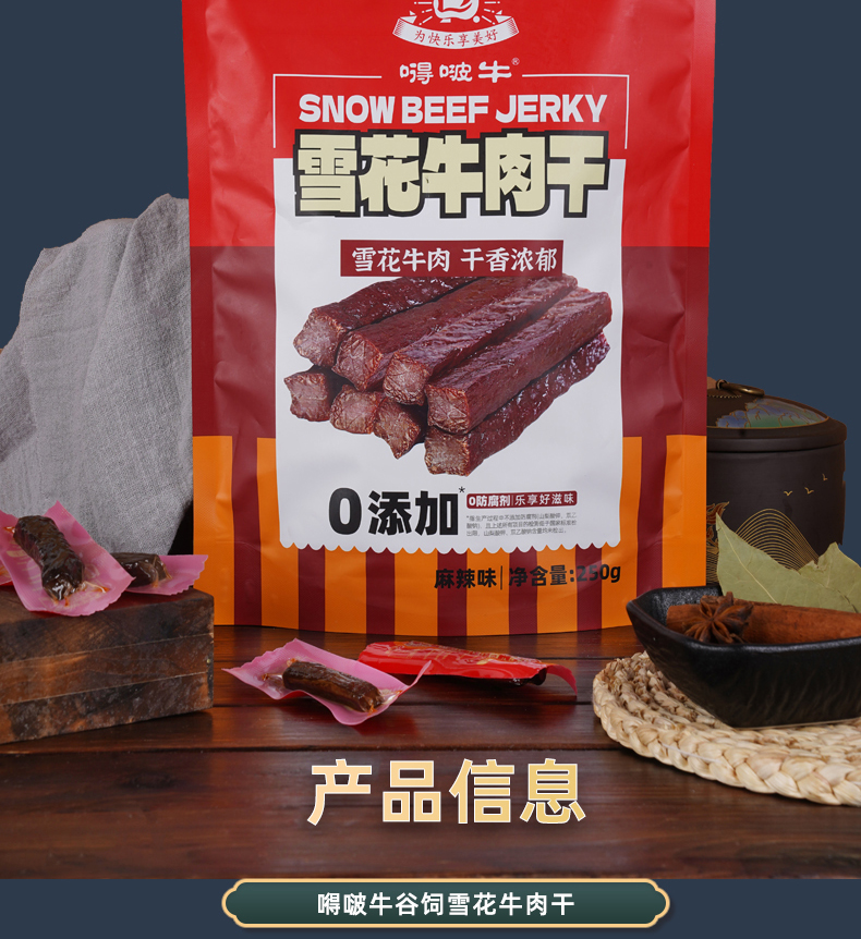嘚啵牛雪花牛肉干麻辣味250g/袋 枫叶色