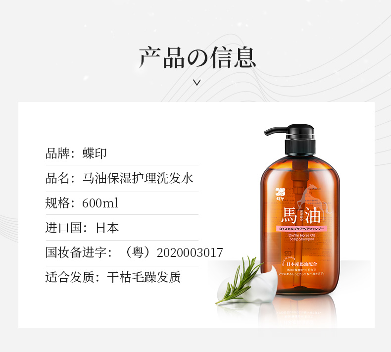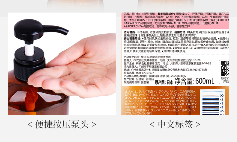 蝶印 马油保湿护理洗发水600mL(计价单位:瓶) 炫橙色