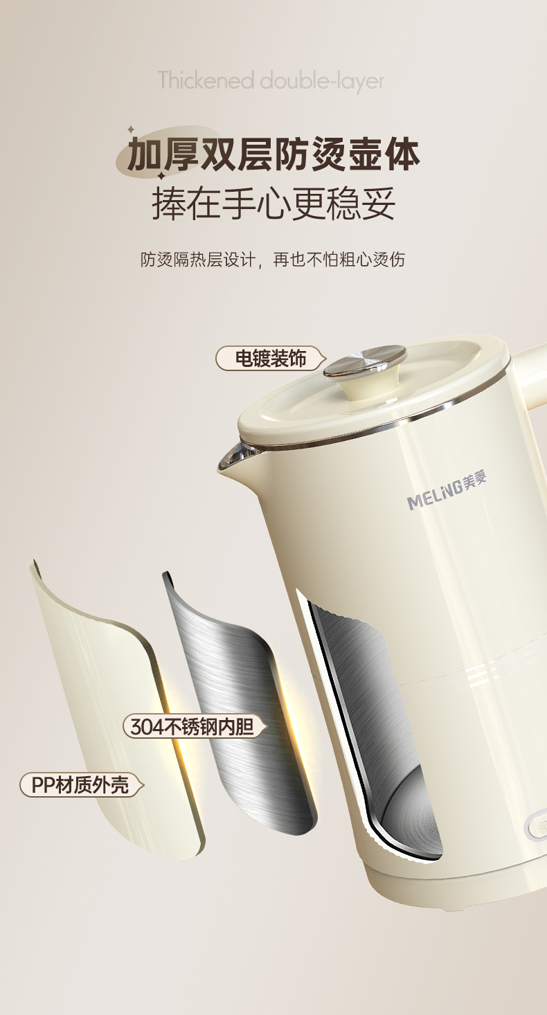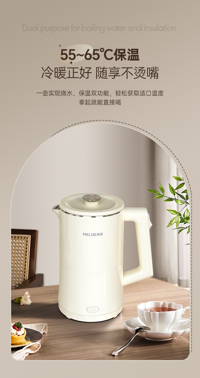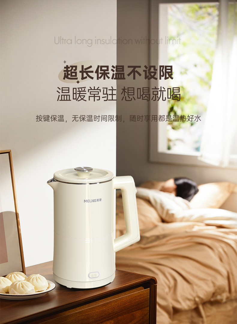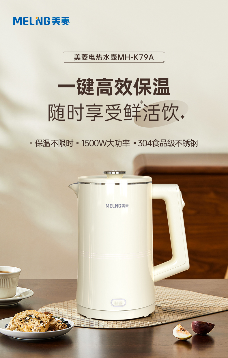 美菱(Meiling)家用1.7L保温电热水壶 双层防烫MH-K79A(单位/台) 象牙色