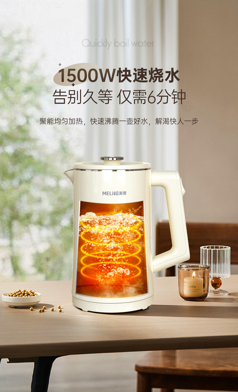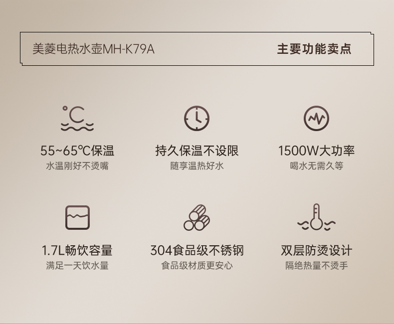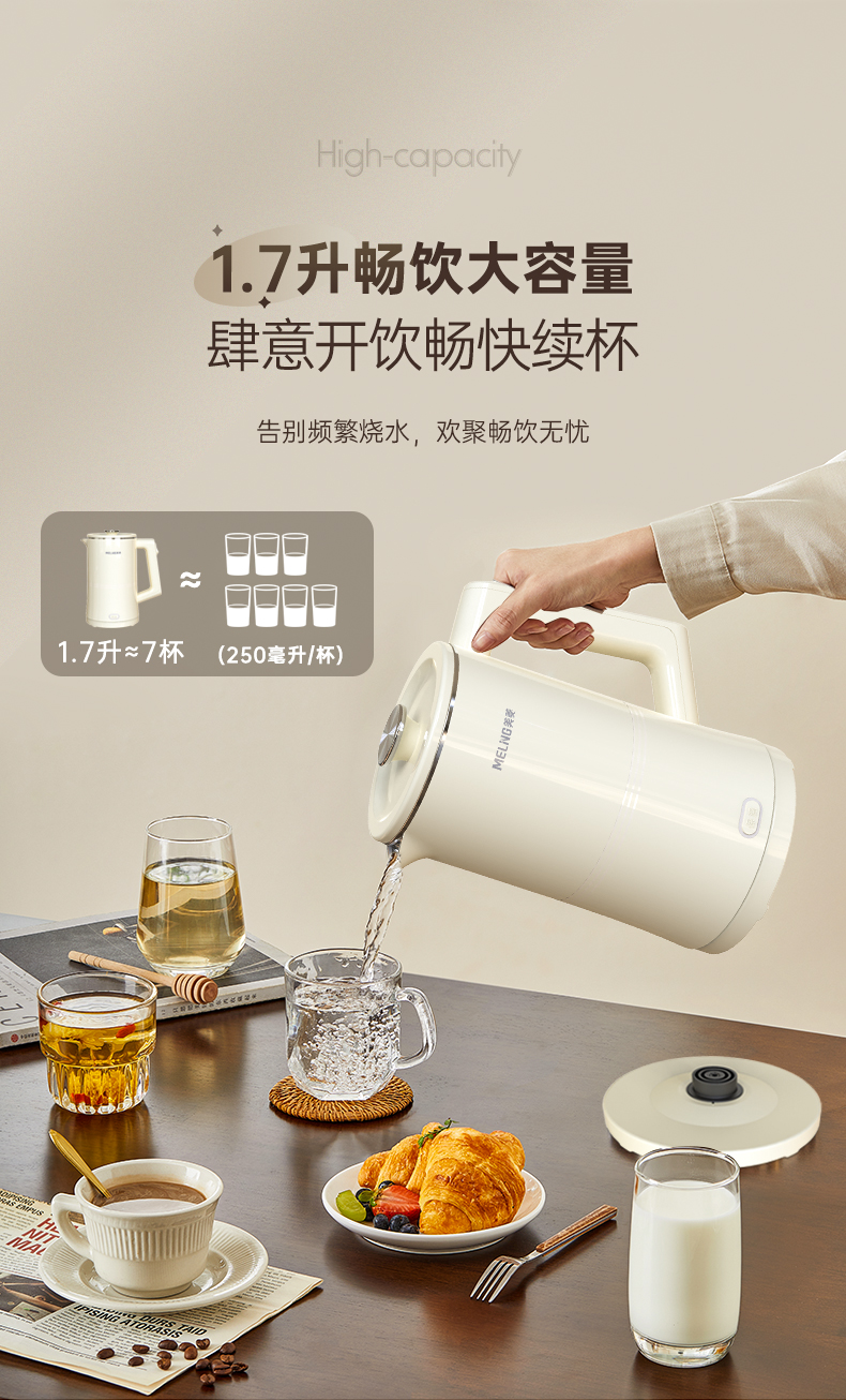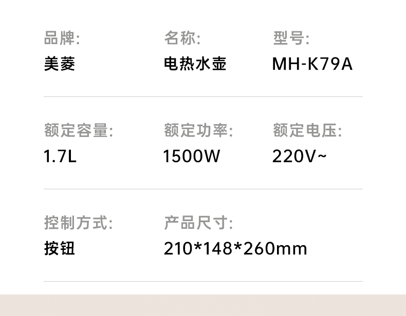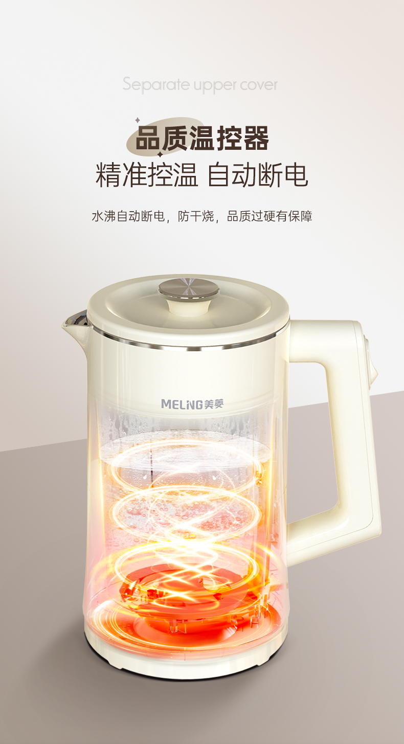 美菱(Meiling)家用1.7L保温电热水壶 双层防烫MH-K79A(单位/台) 象牙色