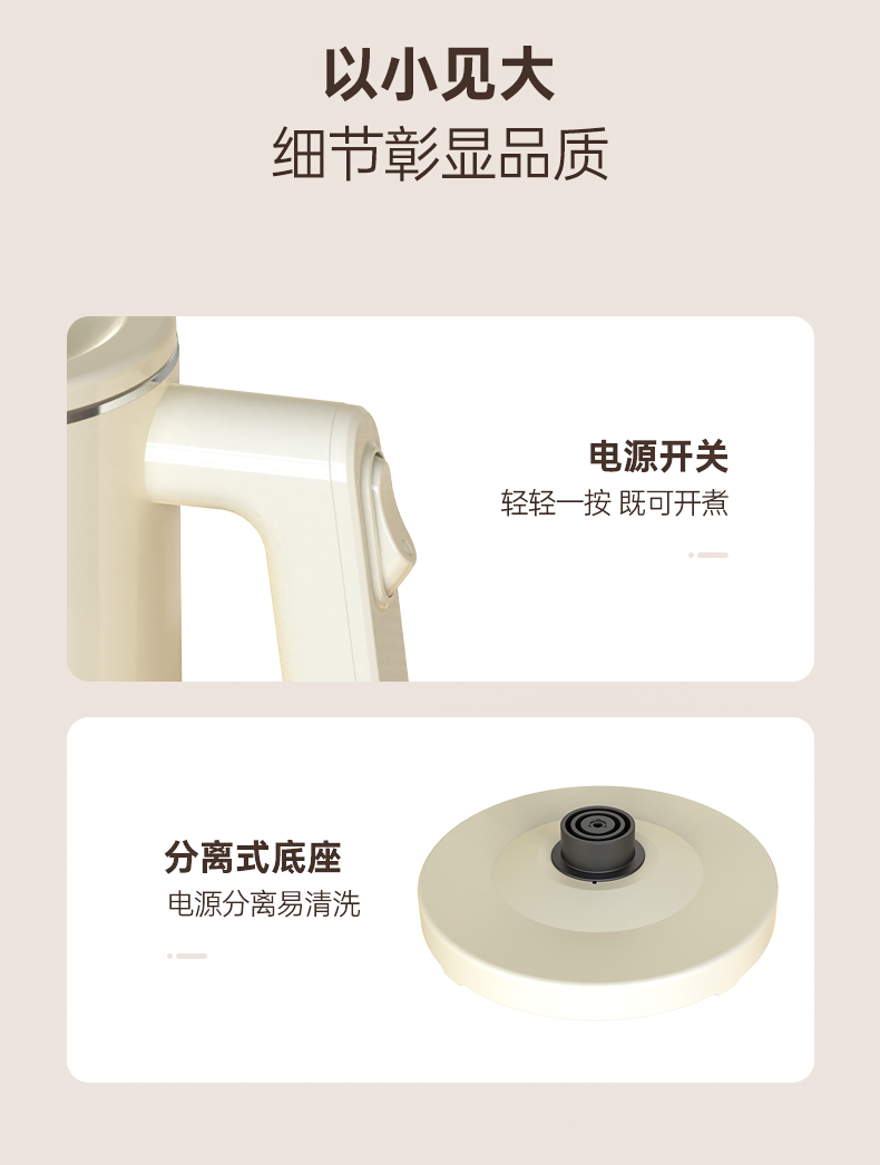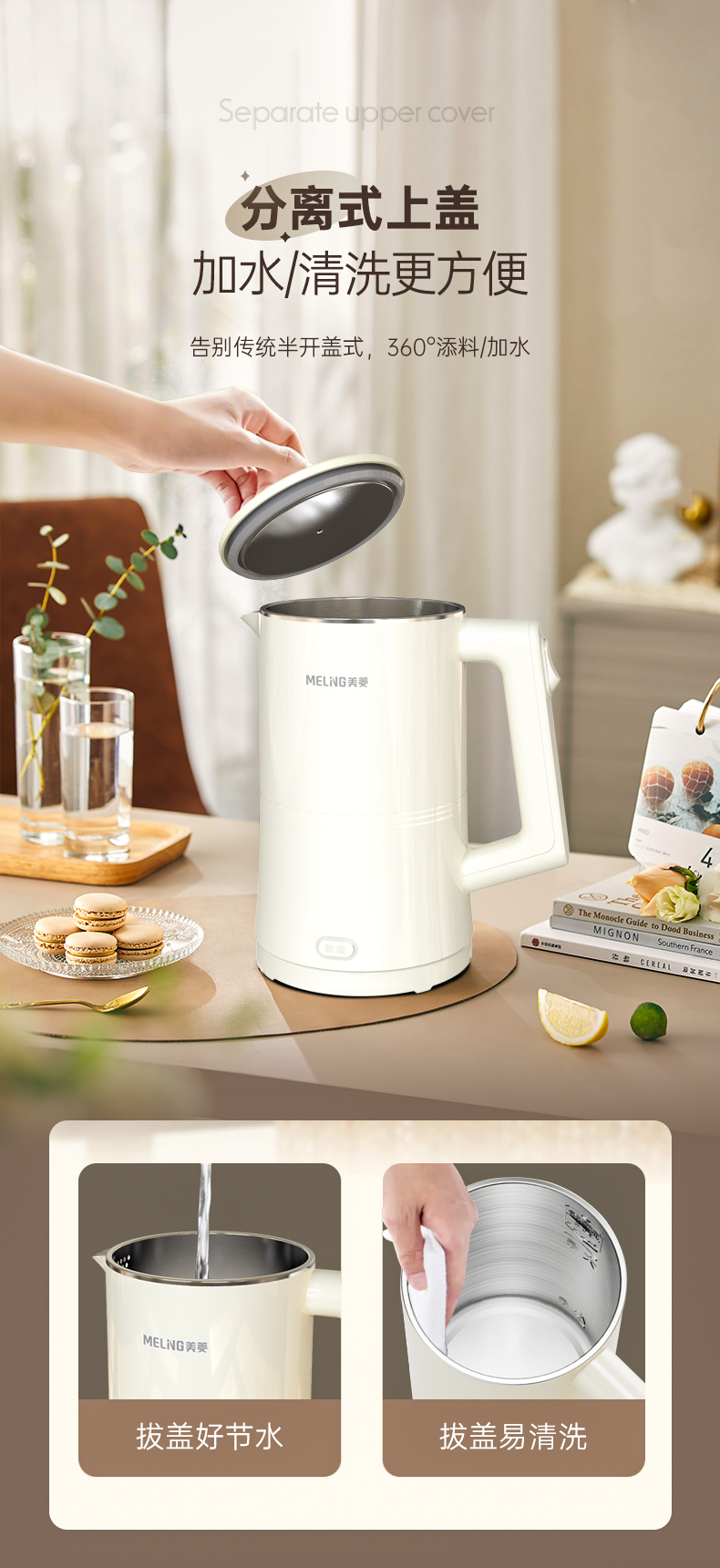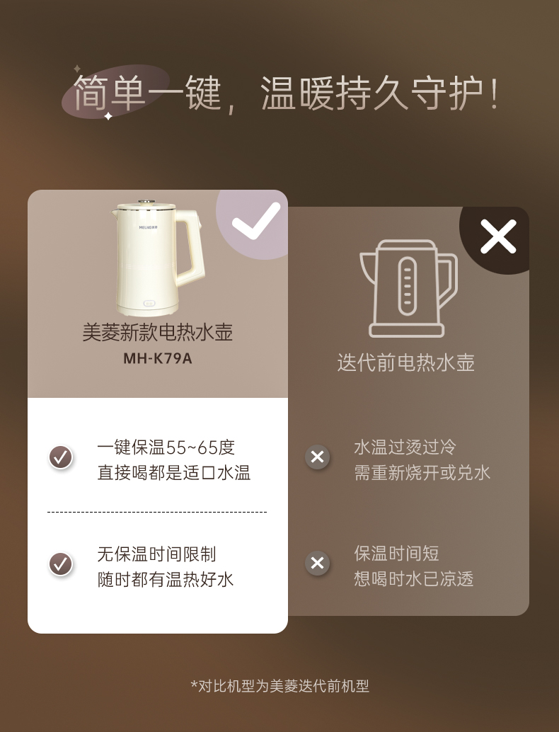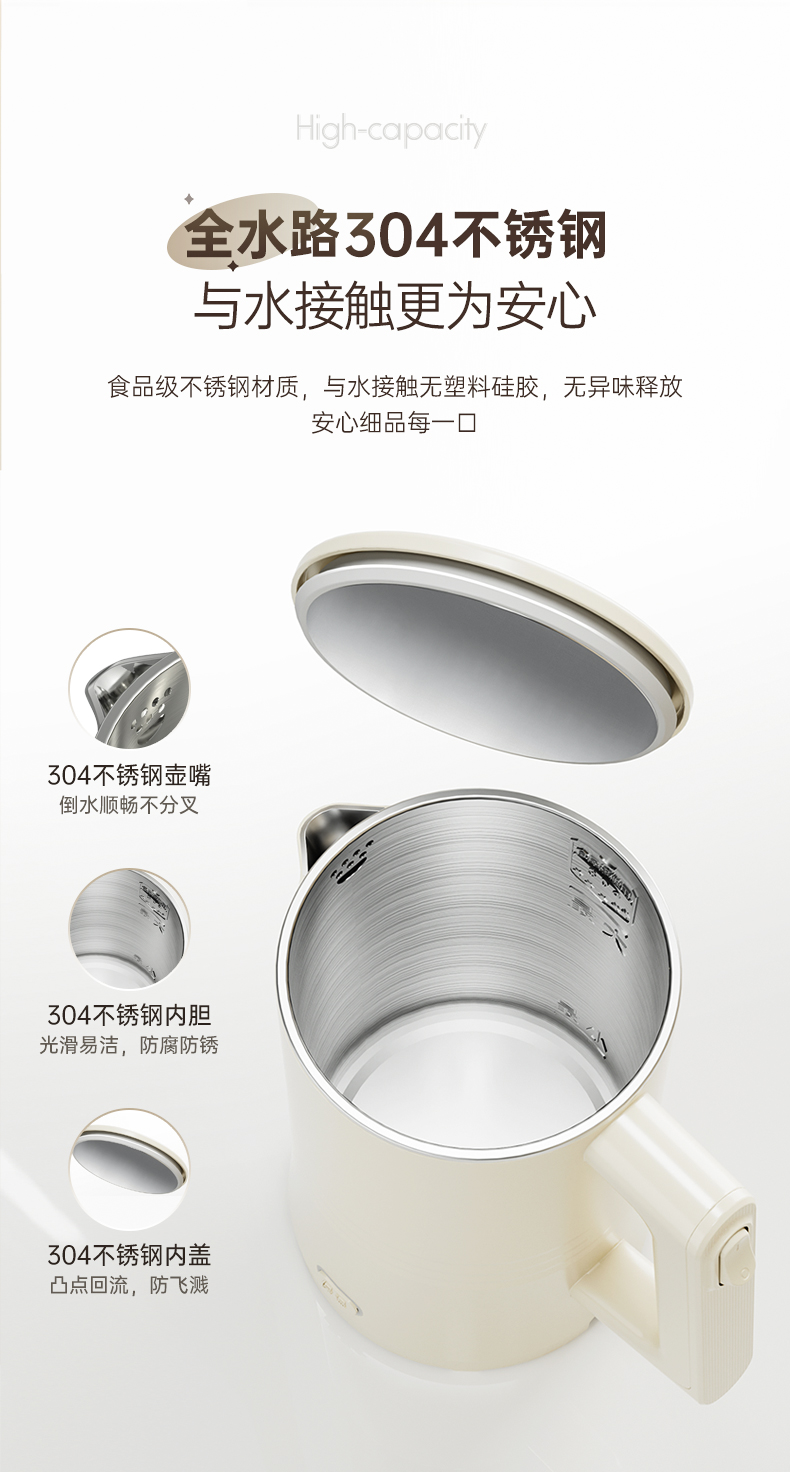 美菱(Meiling)家用1.7L保温电热水壶 双层防烫MH-K79A(单位/台) 象牙色