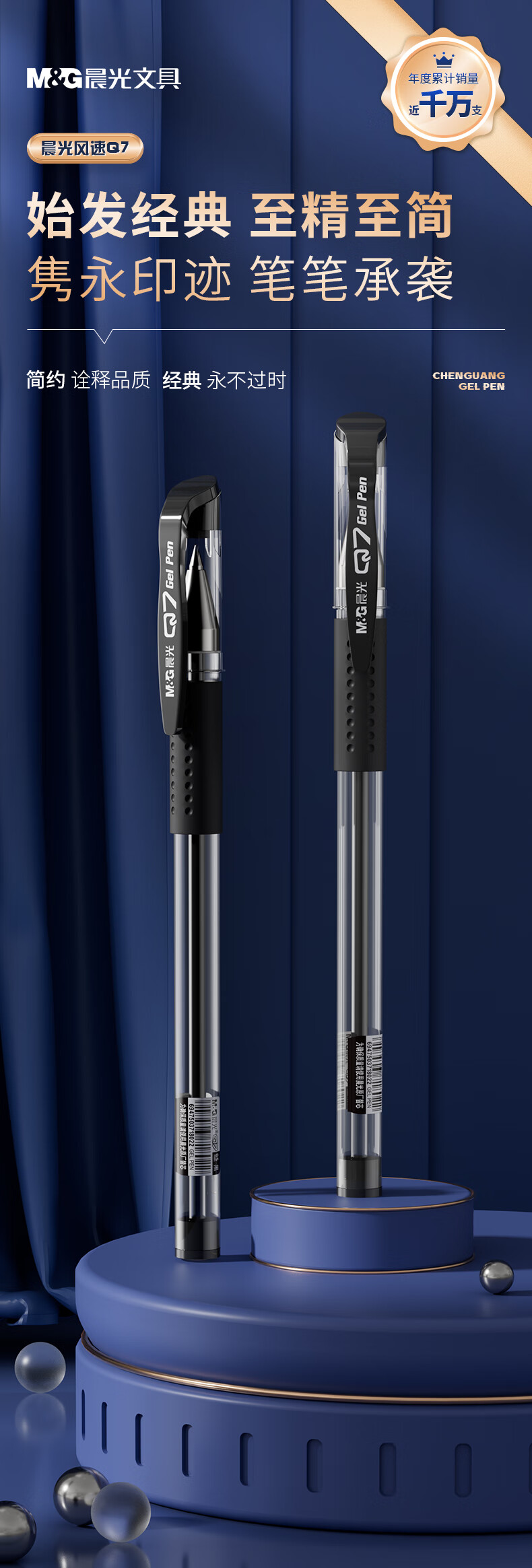 晨光中性笔Q7 黑0.5 12支/盒 2盒装 黑色