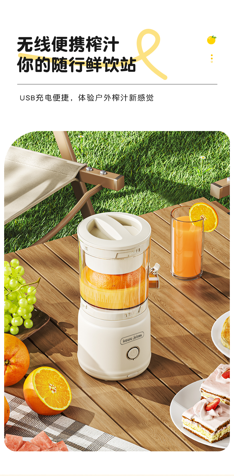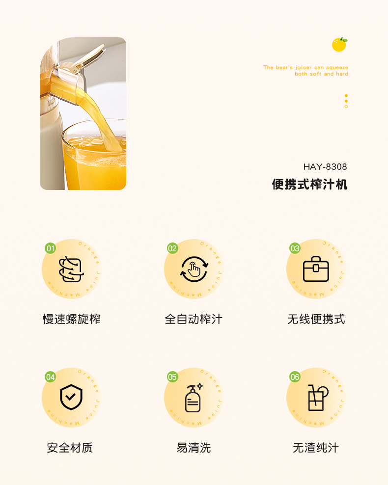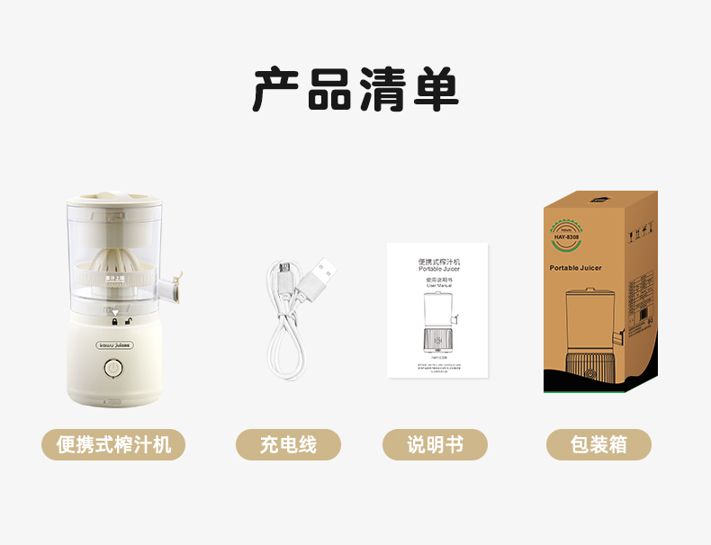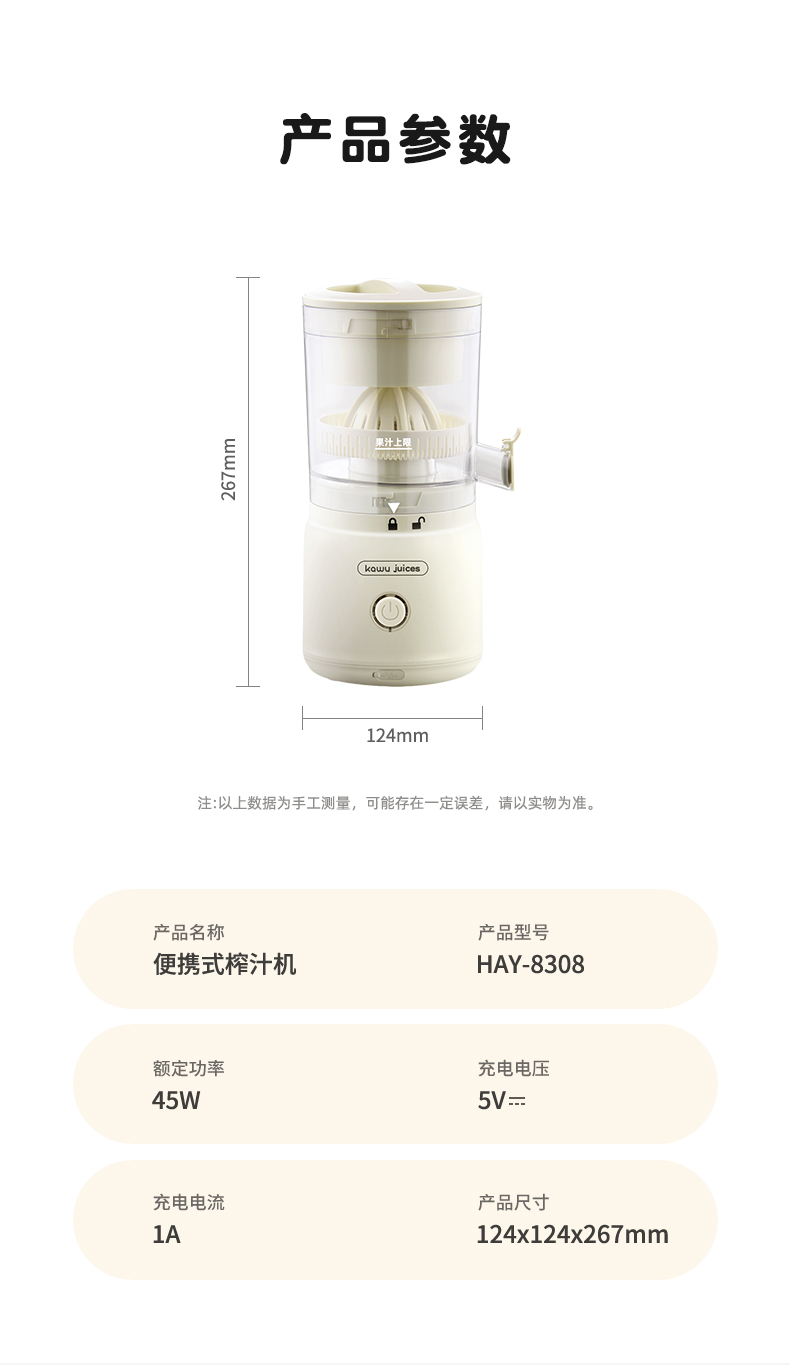 卡屋(kawu) 便携式无线榨汁机HAY-8308(单位:台) 本白色