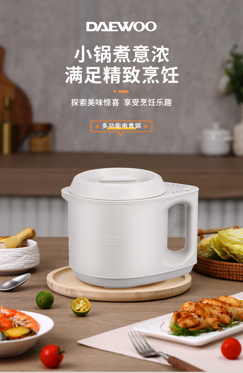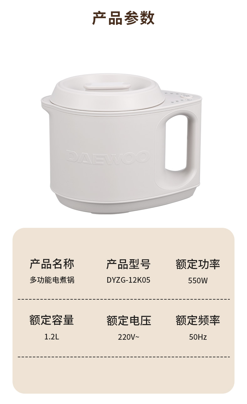 大宇(DAEWOO)家用小型1.2L多功能电煮锅 DYZG-12K05(单位:台) 多宁顿灰