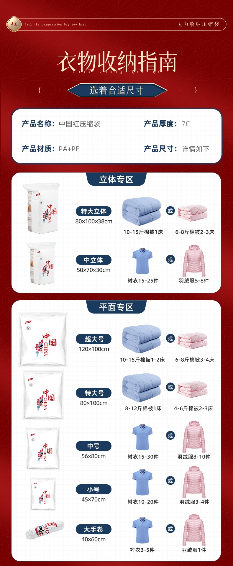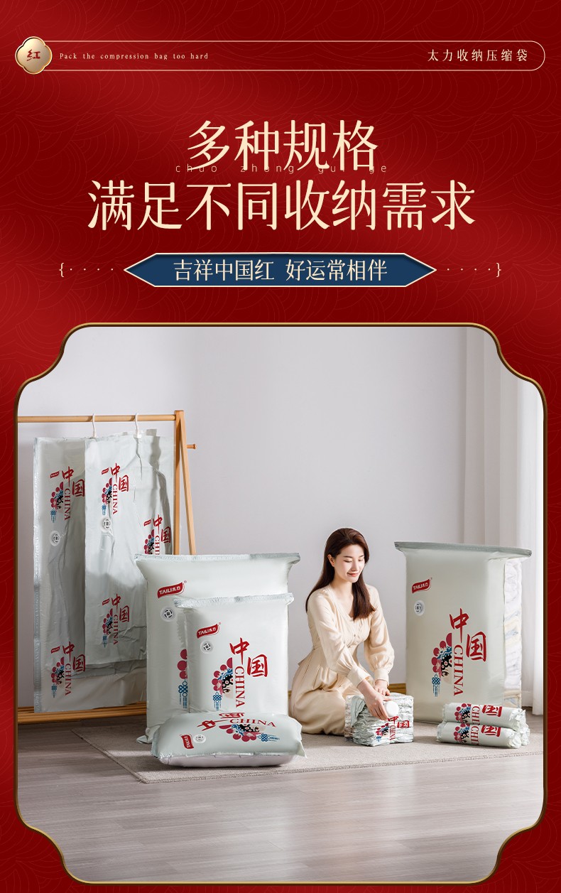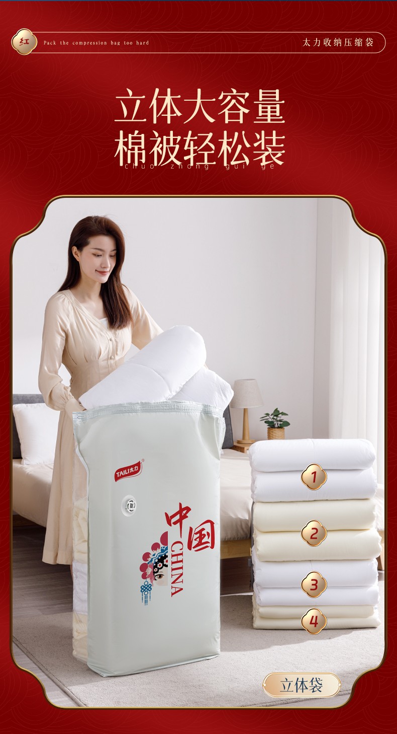 太力 AZ482 6特大号平面+手泵 中国红收纳袋7件套 白色(单位:套)