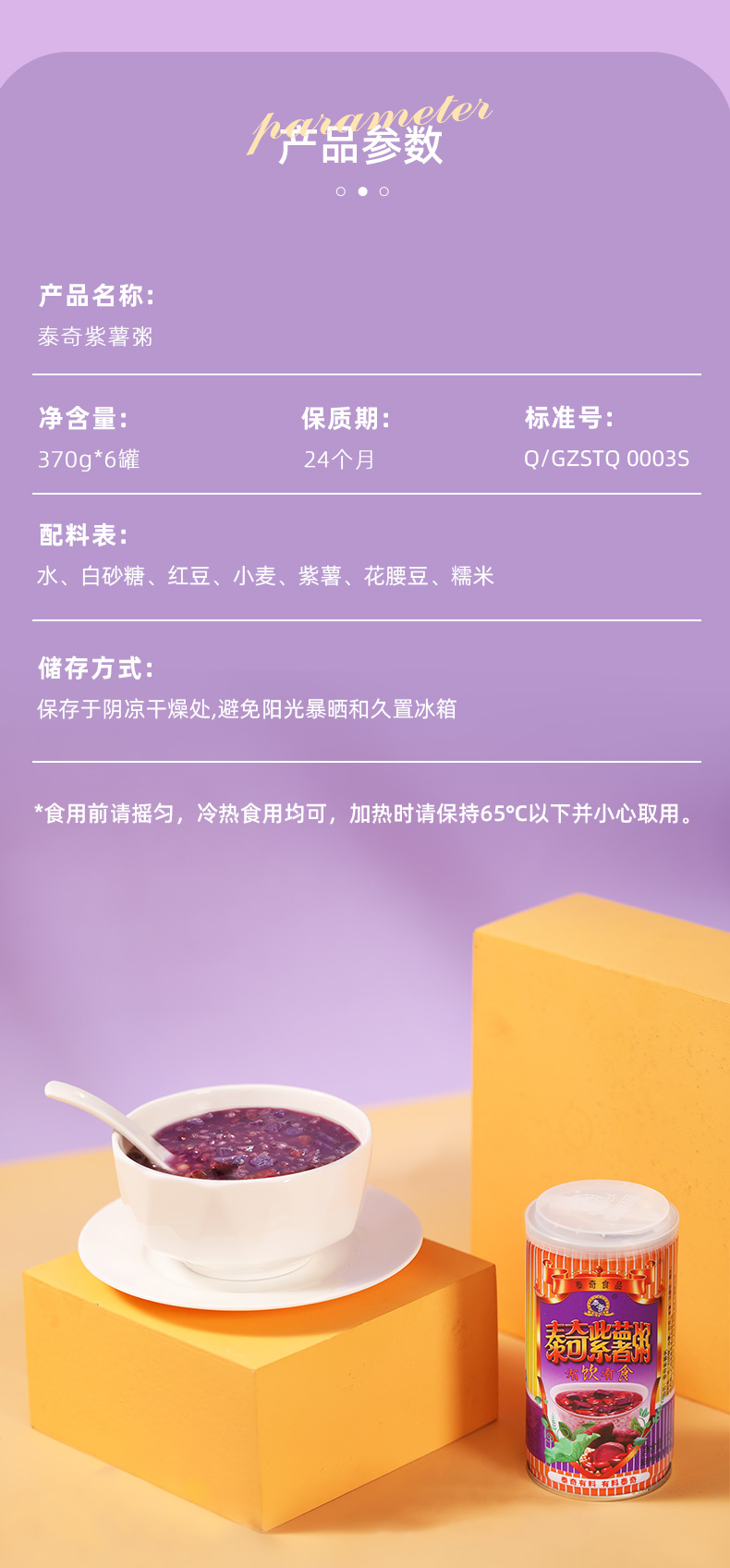 泰奇紫薯粥370g*6 瓶/组 紫色