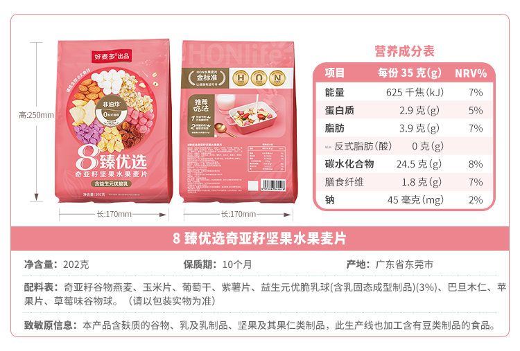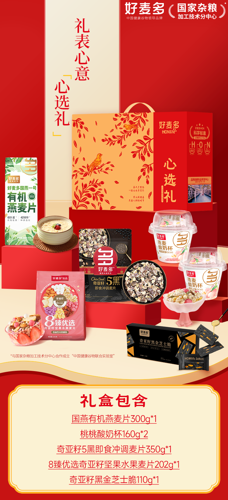 好麦多(HONlife) 健康心选礼燕麦礼盒 1282g 燕麦组合套装健康送礼 混色(单位:盒)