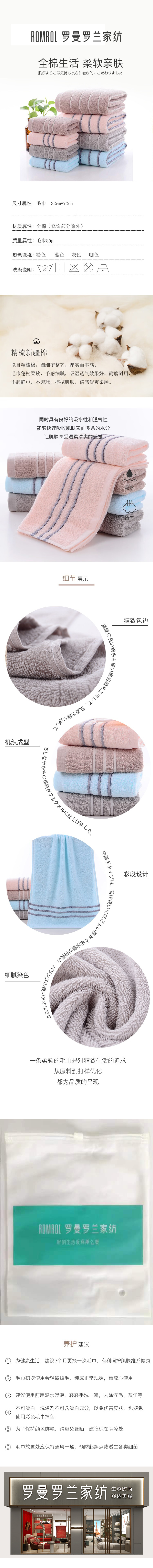 罗曼罗兰(ROMROL)舒适全棉毛巾32*72cm(单位:条) 粉色