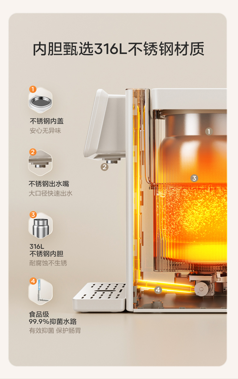 美的(Midea)电热水瓶 可拆式饮水机 316L不锈钢5L大容量家用 可拆内胆 MK-SP50E-20FPro(单位:台) 白色