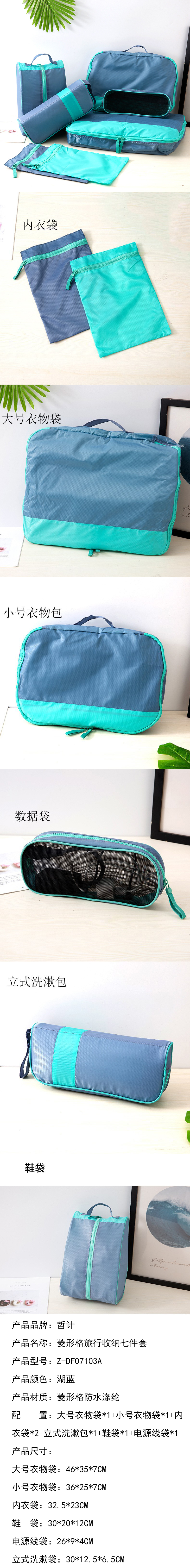 哲计 Z-DF07103A 七件套 菱形格旅行收纳 天蓝色(单位:套)