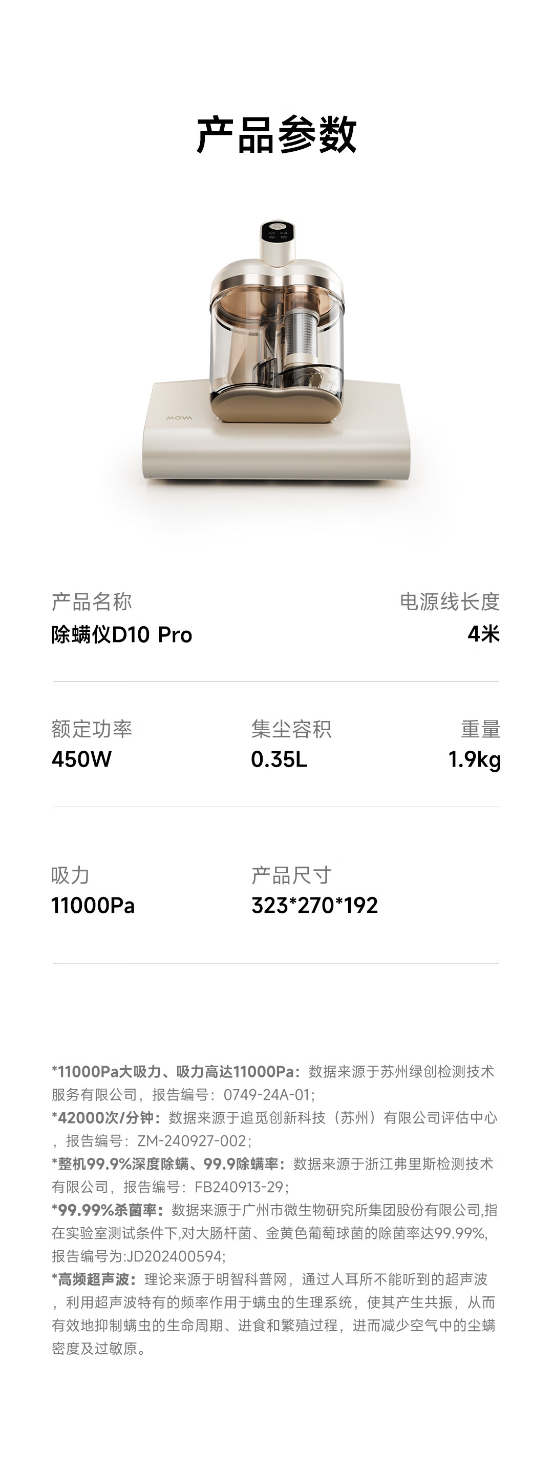 Mova D10 PRO 450W 家用吸尘除螨 香槟色(单位:台)