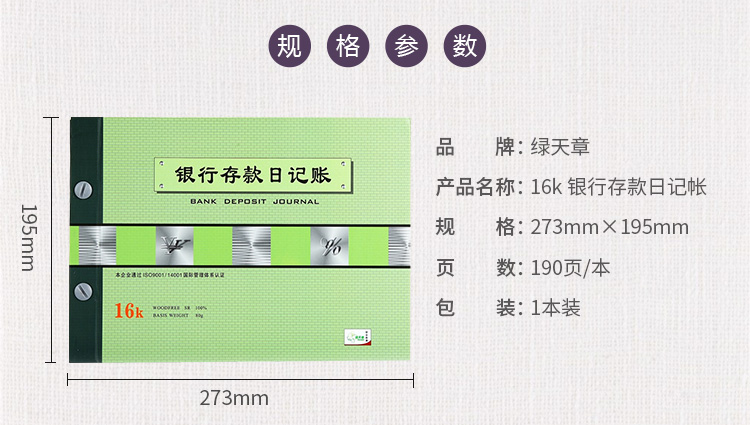 天章 (TANGO) 银行存款日记帐 190页 16k银行存款日记帐 绿色(单位:本)