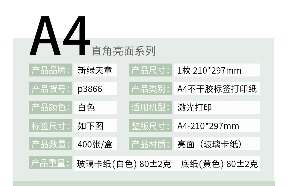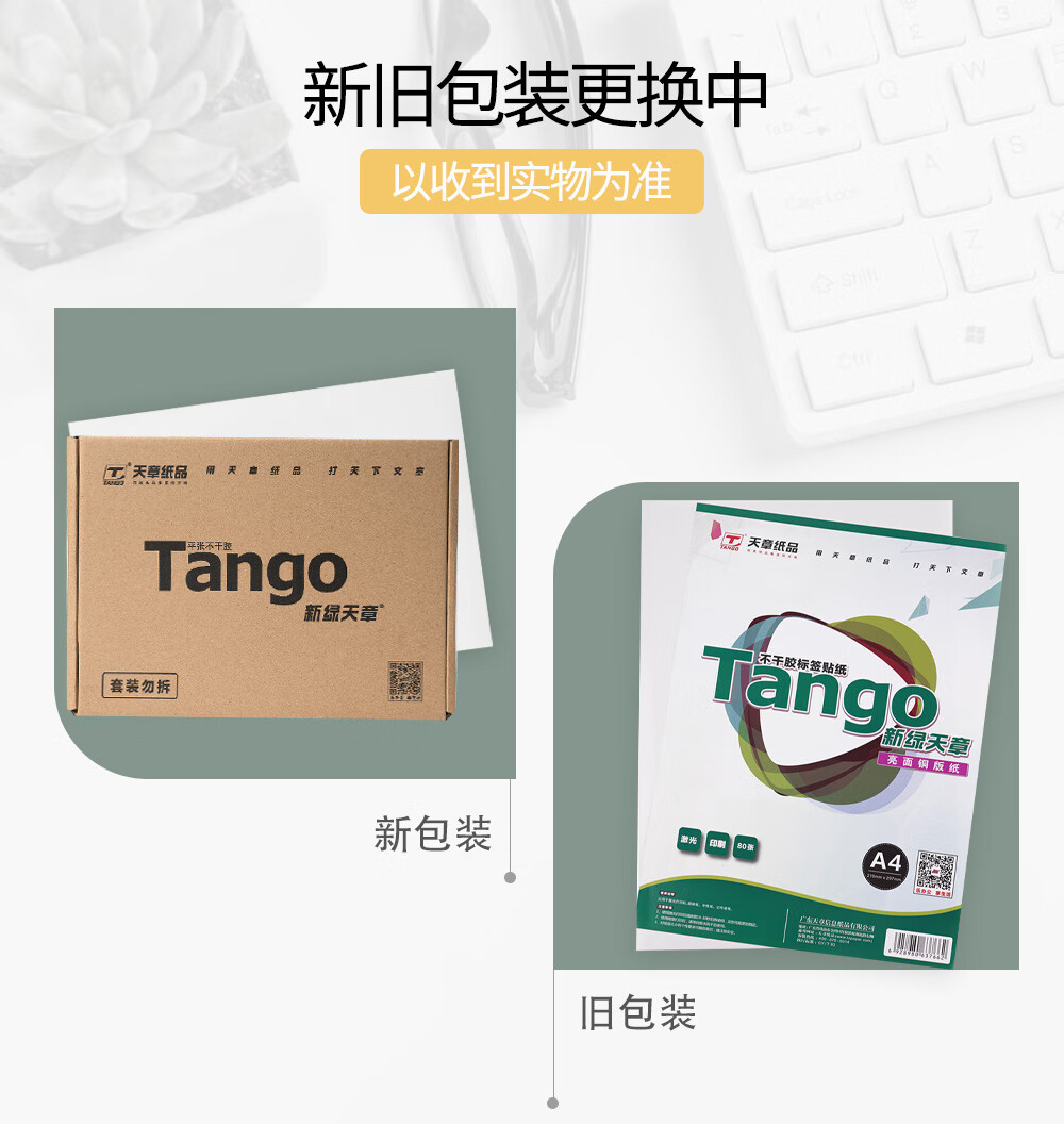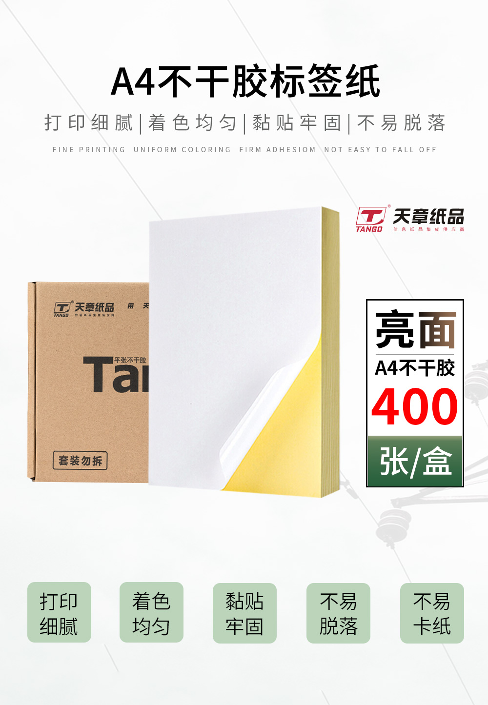 天章 (TANGO) P3866 A4亮面不干胶 400张/包 A4不干胶 白色(单位:盒)