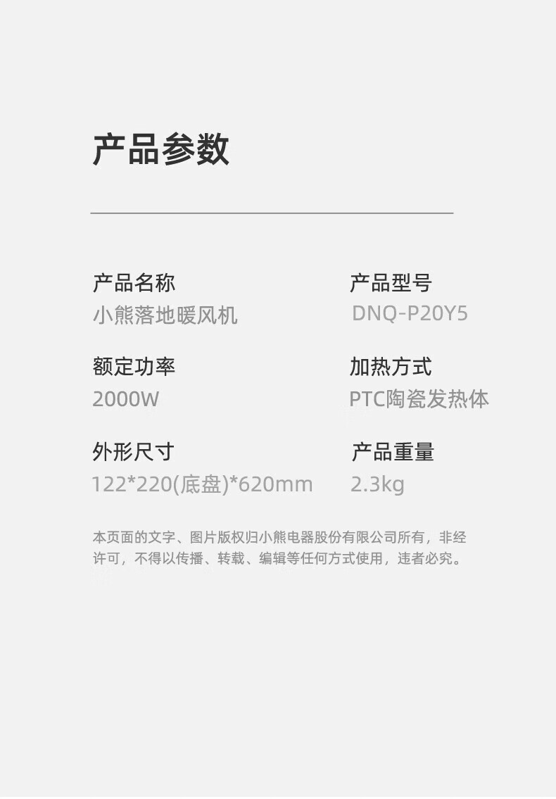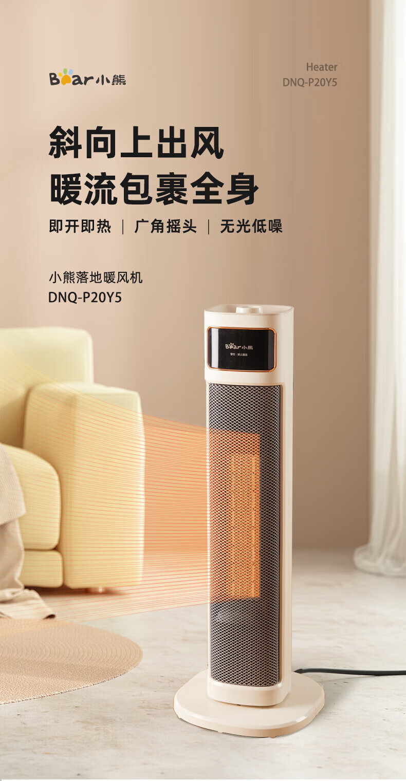 小熊(Bear) DNQ-P20Y5 2000W 取暖器落地暖风机 米白色(单位:台)
