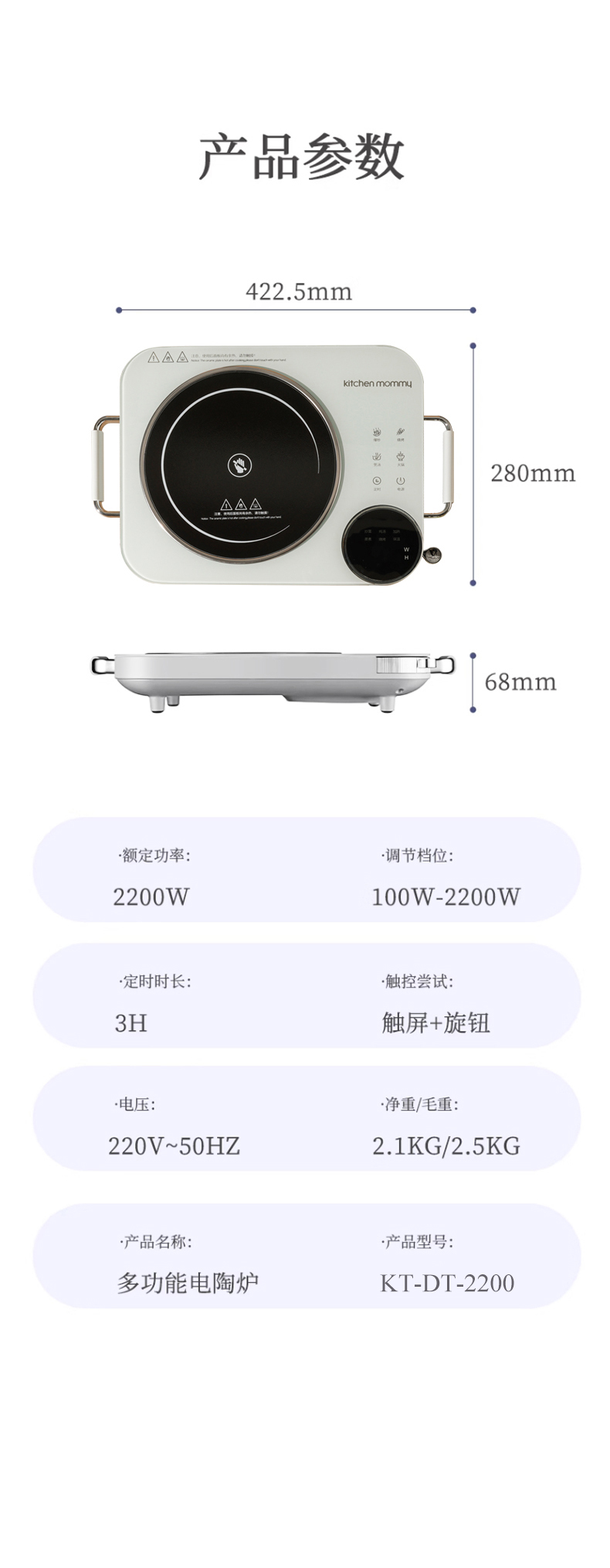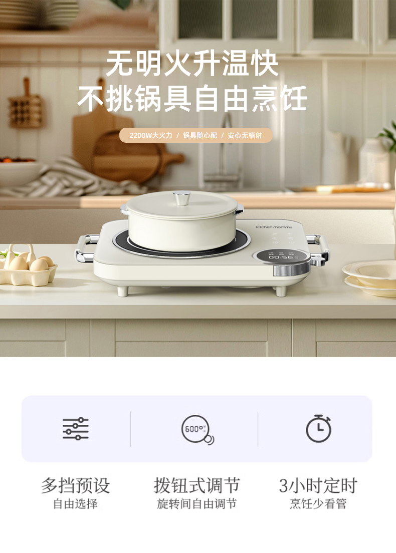厨创妈咪(kitchen mommy) KT-DT-2200 2200W 电陶炉大功率 白色(单位:台)